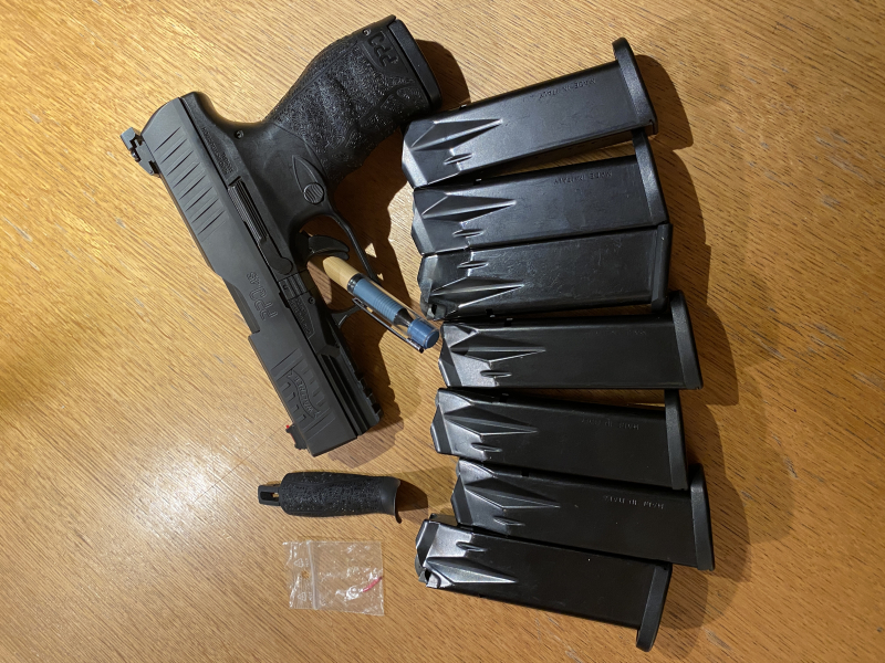 Walther PPQ M2 in .45 Auto/ACP. Aus erster Hand gekauft bei Frankonia 2019. Ca. 1000 Schuss Belastung. Mit 8 Magazinen und LPA Visier. Ein austauschbarer Griffrücken und Korn in rot sind dabei. Kein weiteres Zubehör vorhanden (den Koffer habe ich mal verschenkt). Die Waffe funktioniert einwandfrei. Abgabe nur wegen Überkontingent bzw. Platzschaffung für Neues. Privatverkauf. Bei Verkauf auf dem Versandweg bitte vorab EWB per mail.