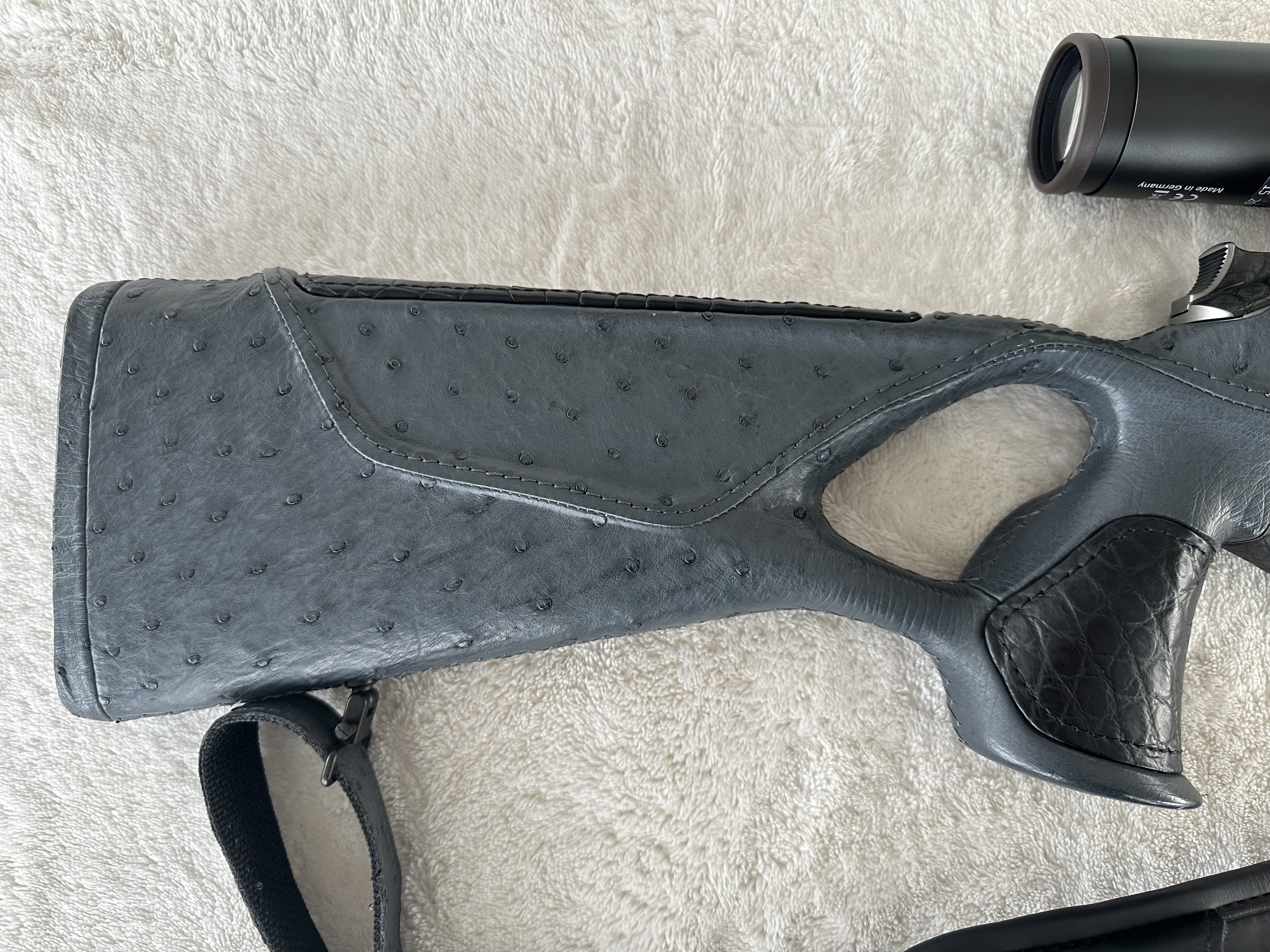 Verkaufe +++ Ein R8 Sondermodell von Blaser im Kaliber .308Win +++ R8 Success „THE SOUTHERN TRAPPER" / "African Trapper" (gekauft 12/2023) +++ mit Leder Strauß und Alligator +++ besondere Laserung von Lauf, Abzugseinheit, Kammergriff mit Kugel und Verschluss +++ mit ATZL-Abzug ! +++ Auf Anfrage gegen Aufpreis auch mit Zielfernrohr: Blaser Optik B1 2,8-20x50 (gekauft 06/2024) +++ Die R8 wurde nur wenige Male am Tag bei schönem Wetter benutzt. +++ Keine Beschädigungen oder Gebrauchspuren. +++ Sehr gutes Schussbild (auch ohne Schalldämpfer) von 1,5cm auf 100m +++ Bei Interesse und weiteren Fragen gerne melden gerne melden. Weitere Fotos gerne per Mail. +++ Es stünde auch noch ein Schalldämpfer (was auf einer anderen R8) zum Verkauf. Roedale TI 48 MK II (.30 = .308Win / .300WinMag) +++ Gerne vor Ort vor kauf besichtigen ! +++ Der Versand erfolgt durch Waffen-Versandservice. Bei Versand ins EU-Ausland bitte vorher melden. Das muss ich gesondert anfragen, ob und wie das geht. +++