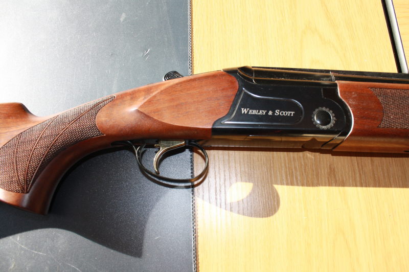 Webley&Scott Mod. 912. Wurde sehr selten im Rahmen der Fachkundeausbildung genutzt, kein Schießstand, keine intensives Handhabungstrainung. Kommt mit montierten Wechselchokes und ohne weiteres Zubehör. Super Zustand, ein wenig staubig.