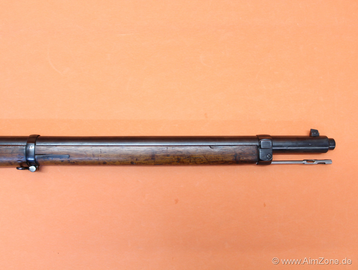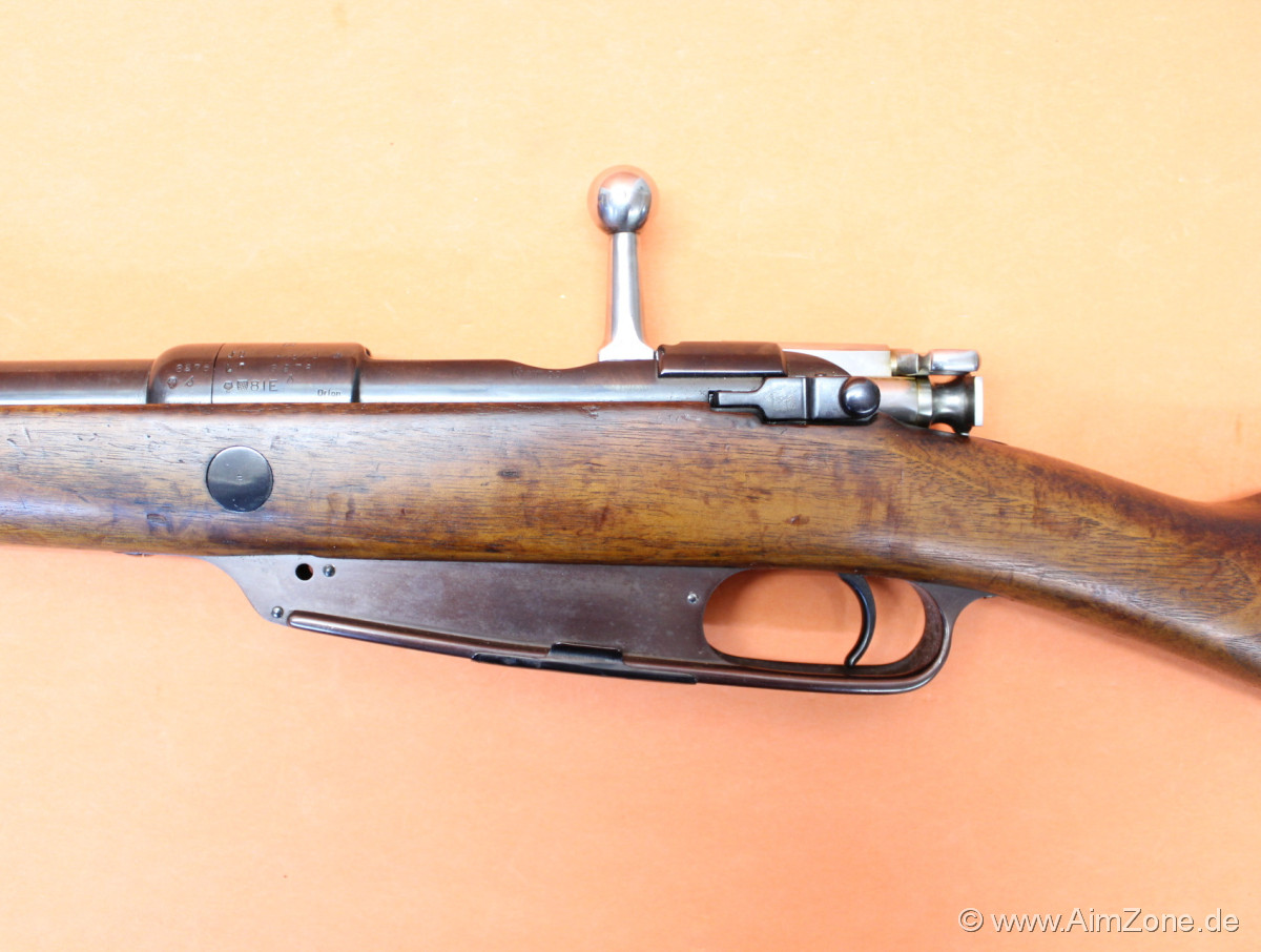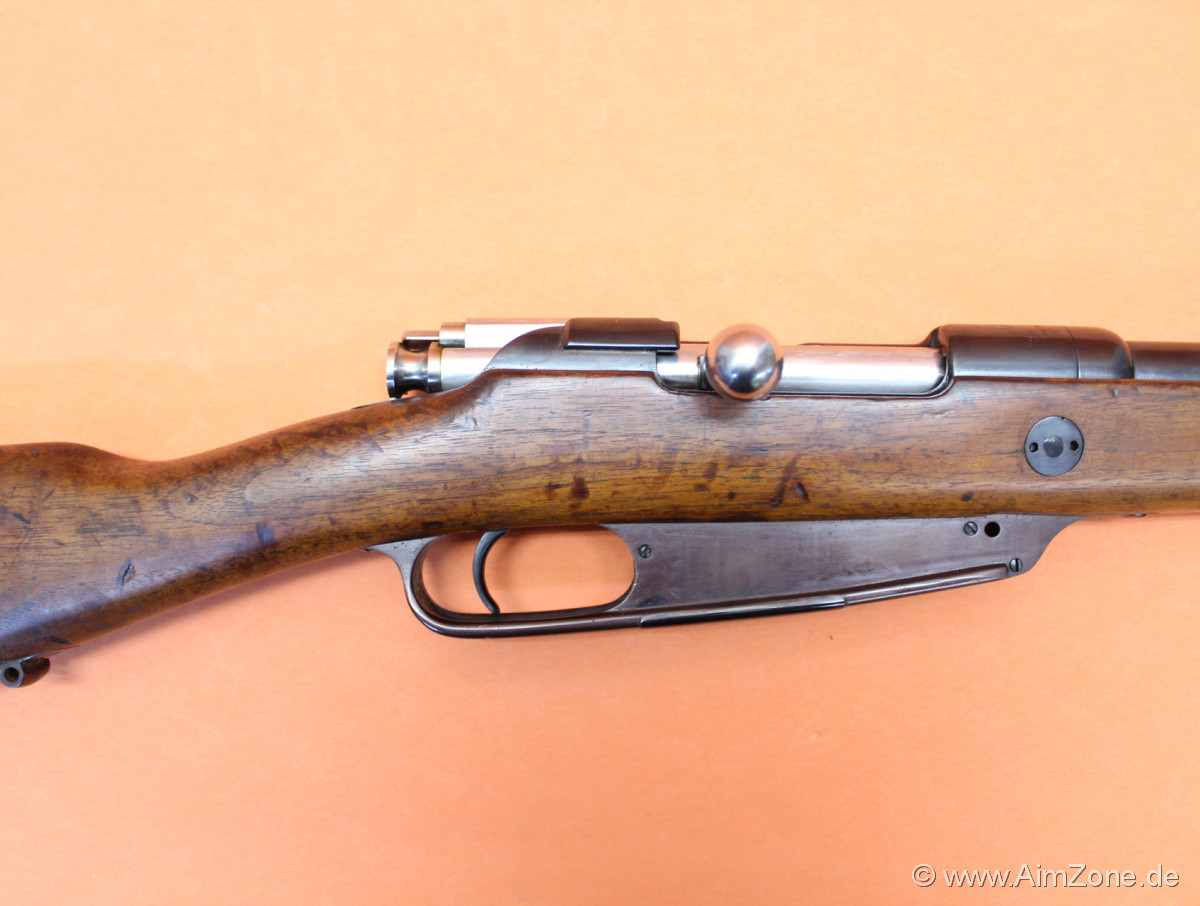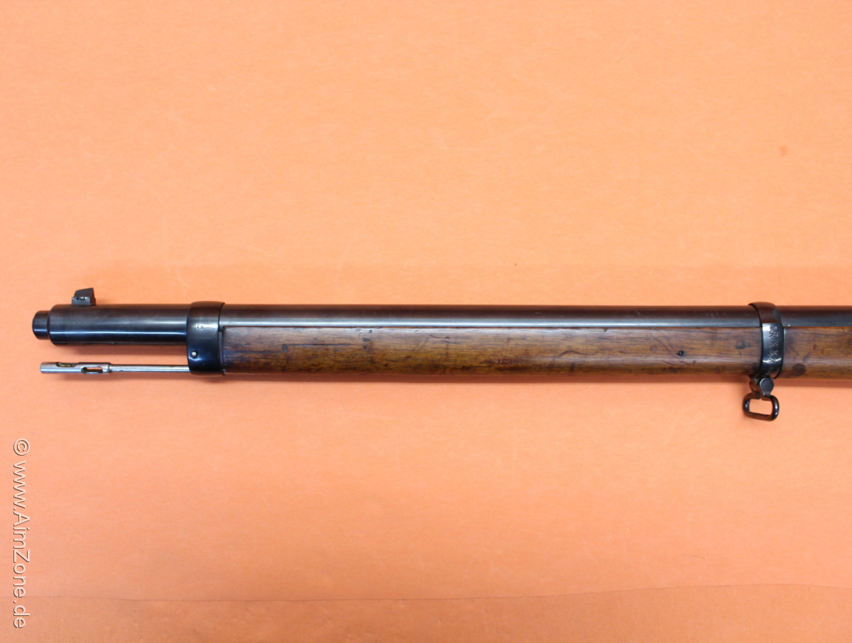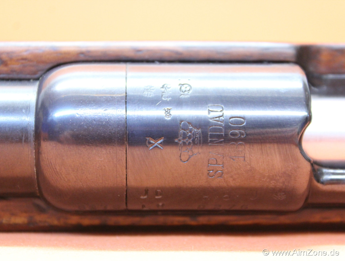 745mm Lauf mit Laufmantel/ Dachkorn/ klappbares Leiternvisier bis 2000m. Systemhülse gestempelt: "S" mit "X" überschlagen [Krone] "Spandau" "1890", seitlich "Gew.88.", Abnahmestempel. Nußbaumschaft mit Riemenbügelöse (unten)/ Kolbenplatte, Oberring mit Bajonetthalter (seitlich)/ Unterring mit Riemenbügel (unten)/ 5-Schuß Magazinkasten aptiert für M98 Ladestreifen/ Abdeckblech unten. Incl. Putzstock. Gebraucht-/ Sammlerwaffe (ohne Zusicherung von mangelfreier Funktion/ Präzision). *Differenzbesteuerter Artikel nach §25a UStG*