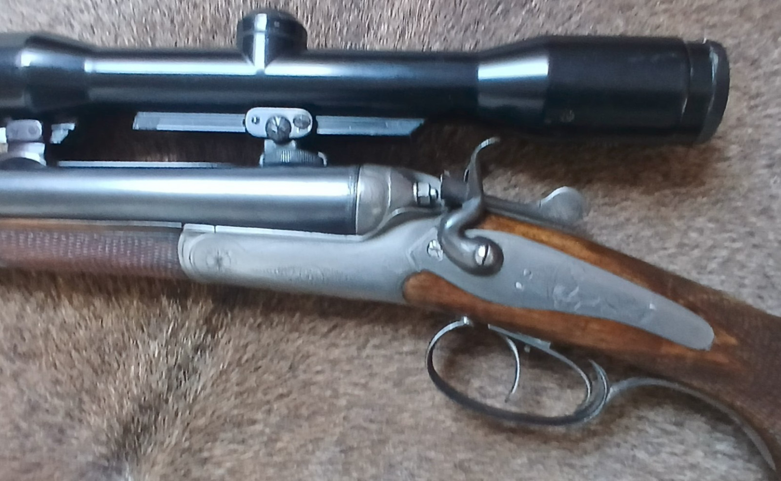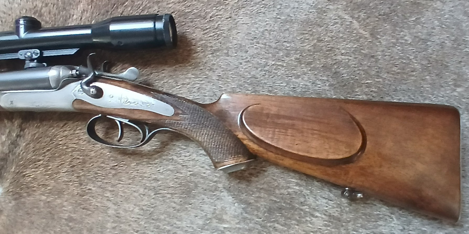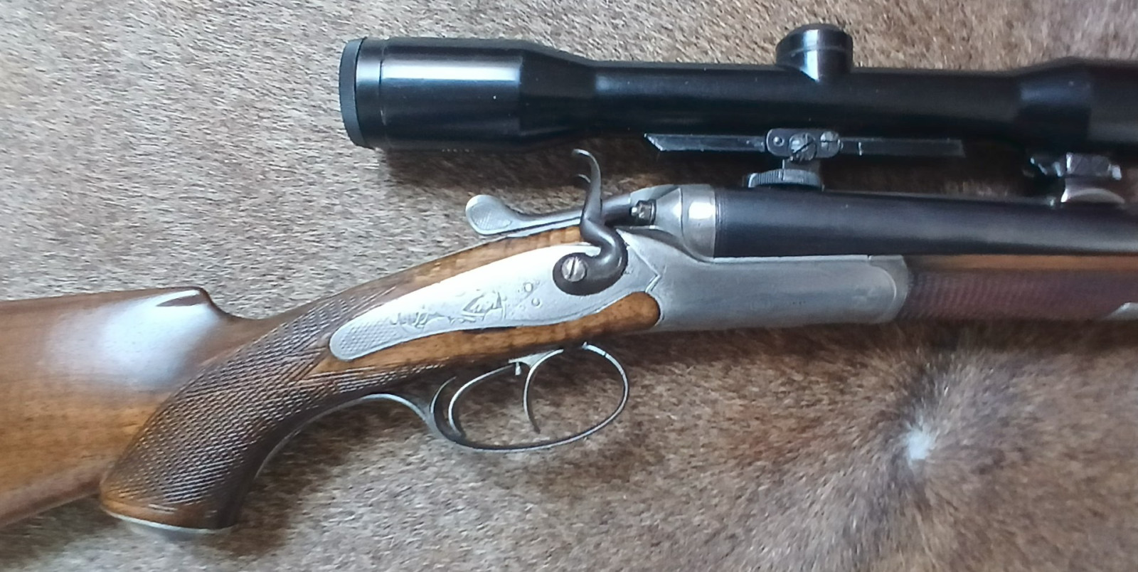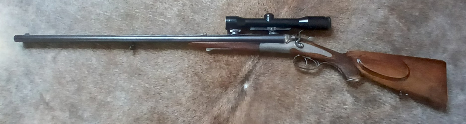 Hahn-Büchsflinte Firma Henneberger (das Gewehr wurde den Beschuss-Zeichen nach in Österreich hergestellt und von der Fima Henneberger überholt)