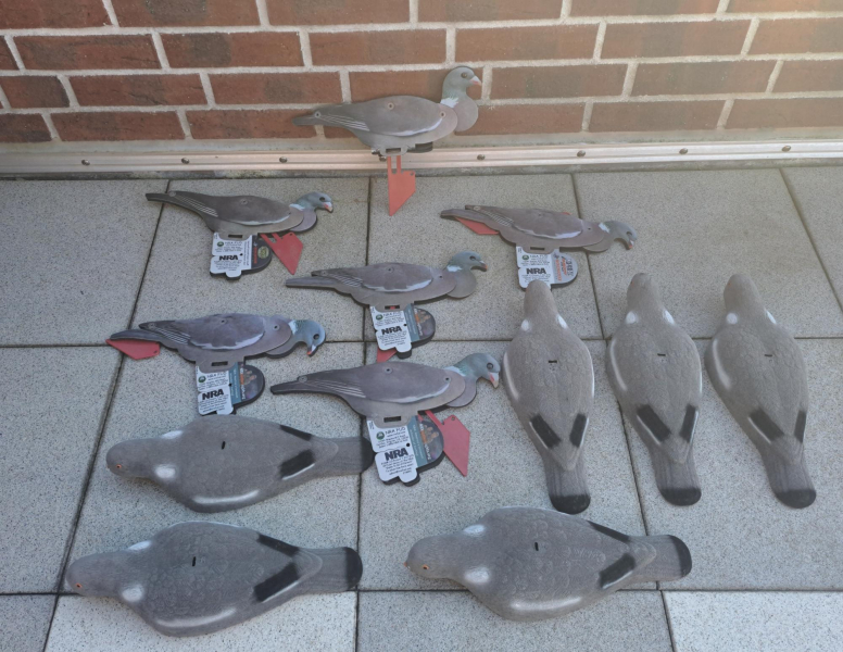 Verkaufe 6 NRA-FUD und 6 Halbschalen beflockte Locktauben. Alles im guten Zustand. Funktionieren gut im Lockbild - eigene Erfahrung.