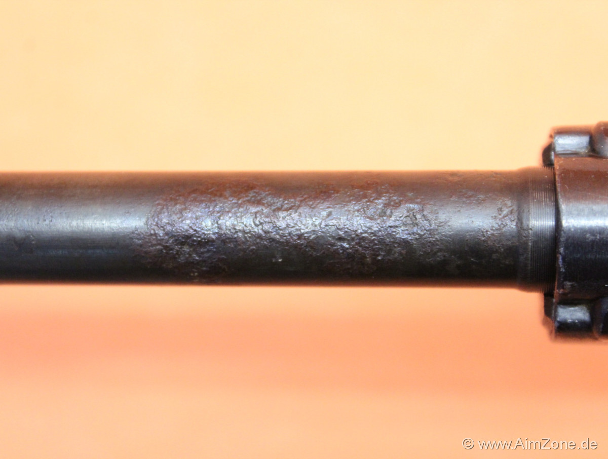 Folgende zusätzliche Angaben nach bestem Wissen und ohne Gewähr: Waffe ist augenscheinlich nicht überarbeitet oder neu brüniert Lauf aussenseitig mit ca. 5 x 1,5cm Anrostung vor Oberring