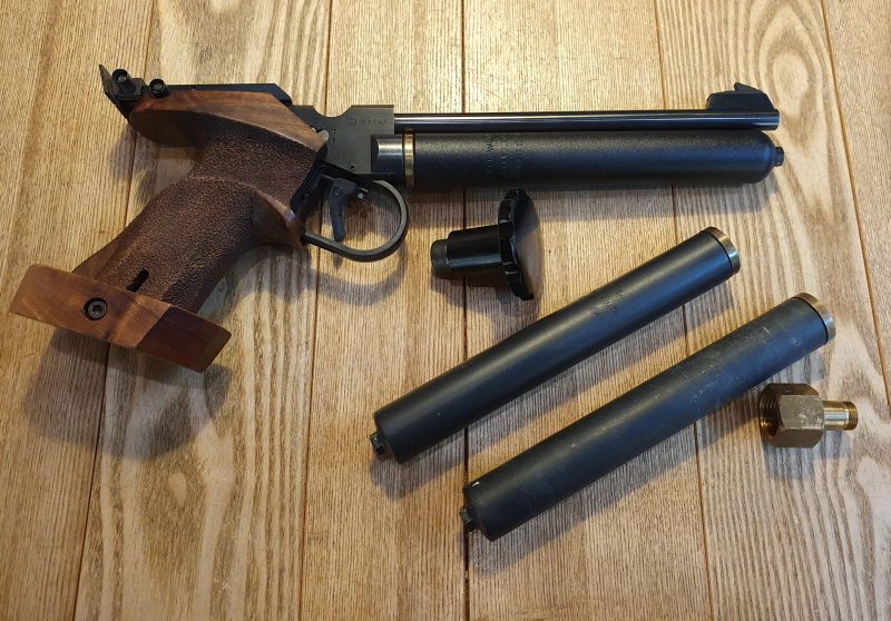 CO2 Luftpistole  mit dem abgebildeten Zubehör