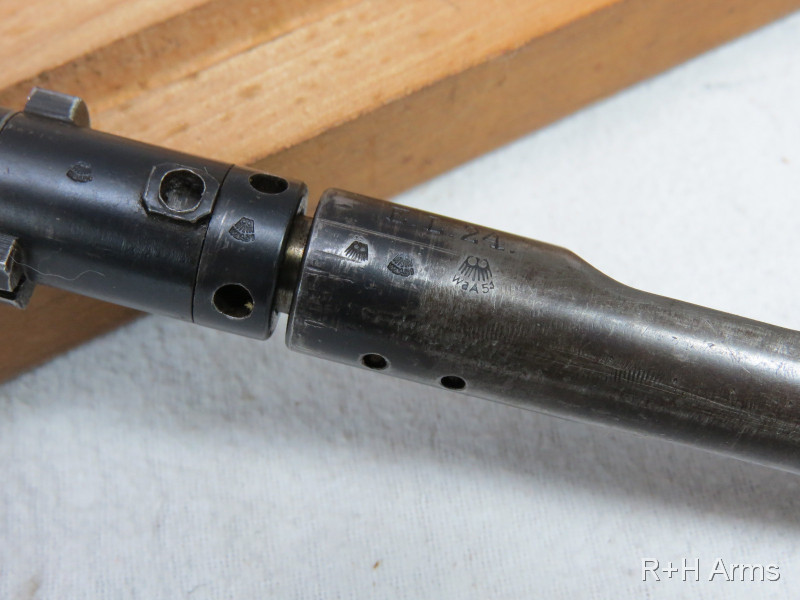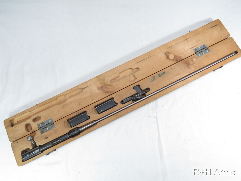 Repetier - Einstecksystem ERMA EL - 24 Kal. 22Lr. im Aufbewahrungskasten mit zwei Magazinen von 1937 - WKII Wehrmacht mit Abnahmestempel. Lauf sehr gut. Guter gebrauchter Zustand mit Gebrauchsspuren siehe Bilder. Verkauf nur an EWB.