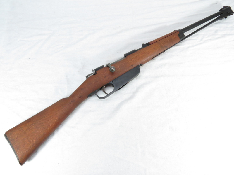 Repetierbüchse Carcano M91TS Kal. 7,35x51 - WKII Wehrmacht ?. Lauf gut leicht rauh. Gültiger Englischer Beschuss. Guter gebrauchter Zustand mit Gebrauchsspuren siehe Bilder. Verkauf nur an EWB.