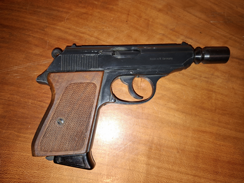 Biete hier eine Schreckschusspistole ERMA EGP 75 S an. Die Pistole ist mit einem PTB Zeichen mit Nummer 69/3 versehen. Weiterhin ist bei den Beschusszeichen eine 78 zu erkennen, dürfte eventuell das Baujahr sein. Pistole ist mit der Nummer 030242 versehen.