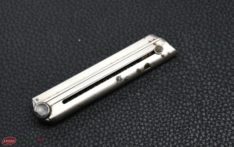 | Magazin für 08 Pistole mit Metallboden Kal. .9 mm Luger, 8 Schuss Magazin für 08 Pistole. Mit Metallboden. Kaliber: 9 mm Luger. 8 Schuss. Gebraucht, guter Zustand. Zustand und Bestempelung siehe Bilder. Verantwortlicher Wirtschaftsakteur gemäß EU Verordnung Der Hersteller ist nicht zu ermitteln. Daher sind wir nach der EU als Hersteller und als EU Verantwortliche Person zu benennen. Firma Antes Jagd- und Sportwaffen GmbH Bahnhofstr. 25 64569 Nauheim info@waffen-antes.de EU Verantwortliche Person Firma Antes Jagd- und Sportwaffen GmbH Bahnhofstr. 25 64569 Nauheim info@waffen-antes.de | | | | | Bilder sind Bestandteil der Beschreibung und der Auktion. Ware ohne Dekoration. | WAFFENVERSAND PREISLISTE Aufstellung der Versandkosten in Euro inkl. 19% Mwst. | Land | EWB freier Artikel | EWB pflichtiger Artikel | Deutschland | 7,90 € | 34,90 € | Belgien | 18,90 € | Bitte Nachfragen | Dänemark | 18,90 € | Bitte Nachfragen | Estland | 18,90 € | Bitte Nachfragen | Finnland | 18,90 € | Bitte Nachfragen | Frankreich | 18,90 € | Bitte Nachfragen | Griechenland | 18,90 € | Bitte Nachfragen | Italien | 18,90 € | Bitte Nachfragen | Lettland | 18,90 € | Bitte Nachfragen | Litauen | 18,90 € | Bitte Nachfragen | Luxemburg | 18,90 € | Bitte Nachfragen | Österreich | 18,90 € | Bitte Nachfragen | Polen | 18,90 € | Bitte Nachfragen | Rumänien | 18,90 € | Bitte Nachfragen | Schweden | 18,90 € | Bitte Nachfragen | Slowakei | 18,90 € | Bitte Nachfragen | Slovenien | 18,90 € | Bitte Nachfragen | Tschechien | 18,90 € | Bitte Nachfragen | Ungarn | 18,90 € | Bitte Nachfragen | Weitere Länder und größere Mengen auf Anfrage. | | |