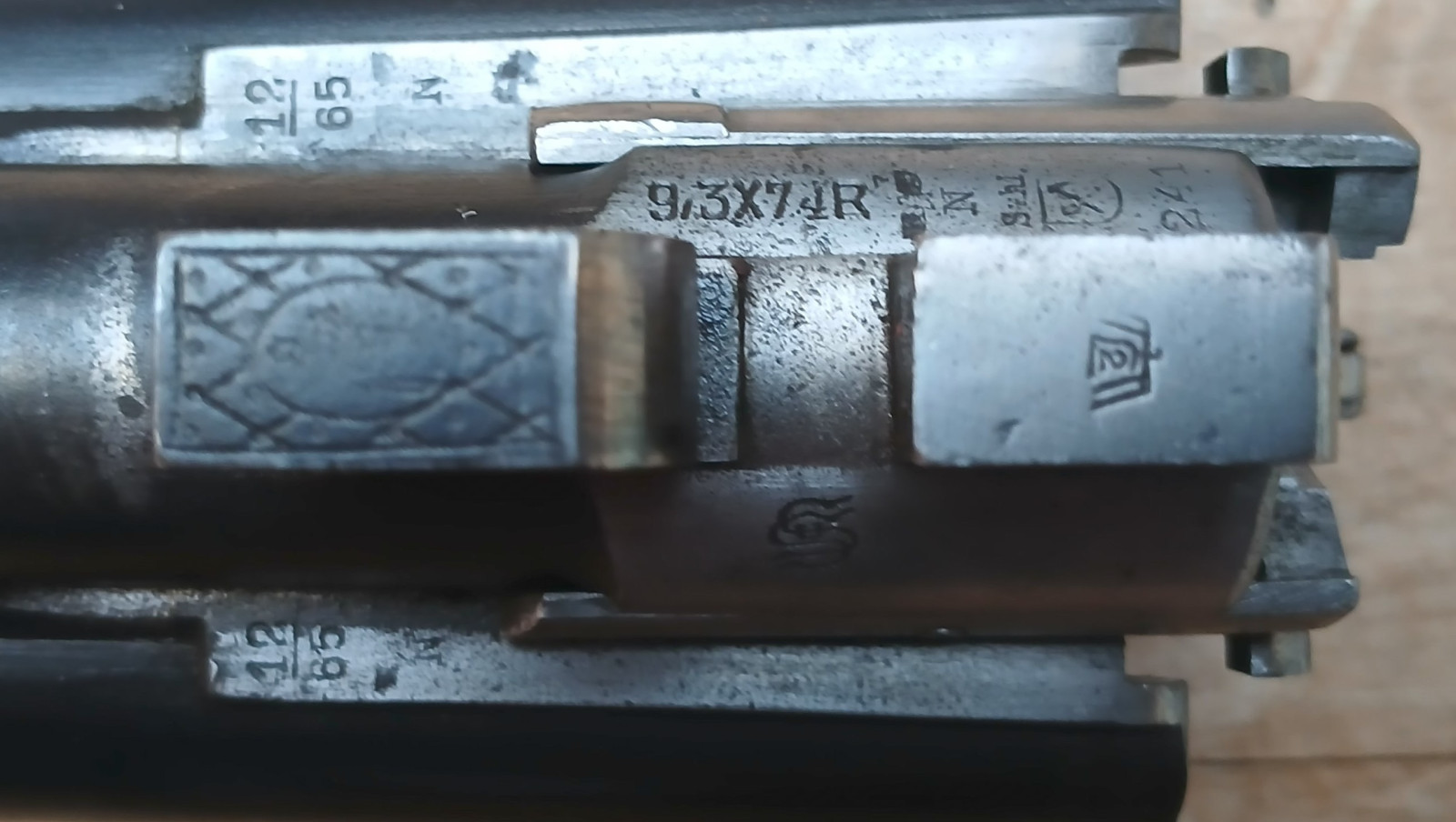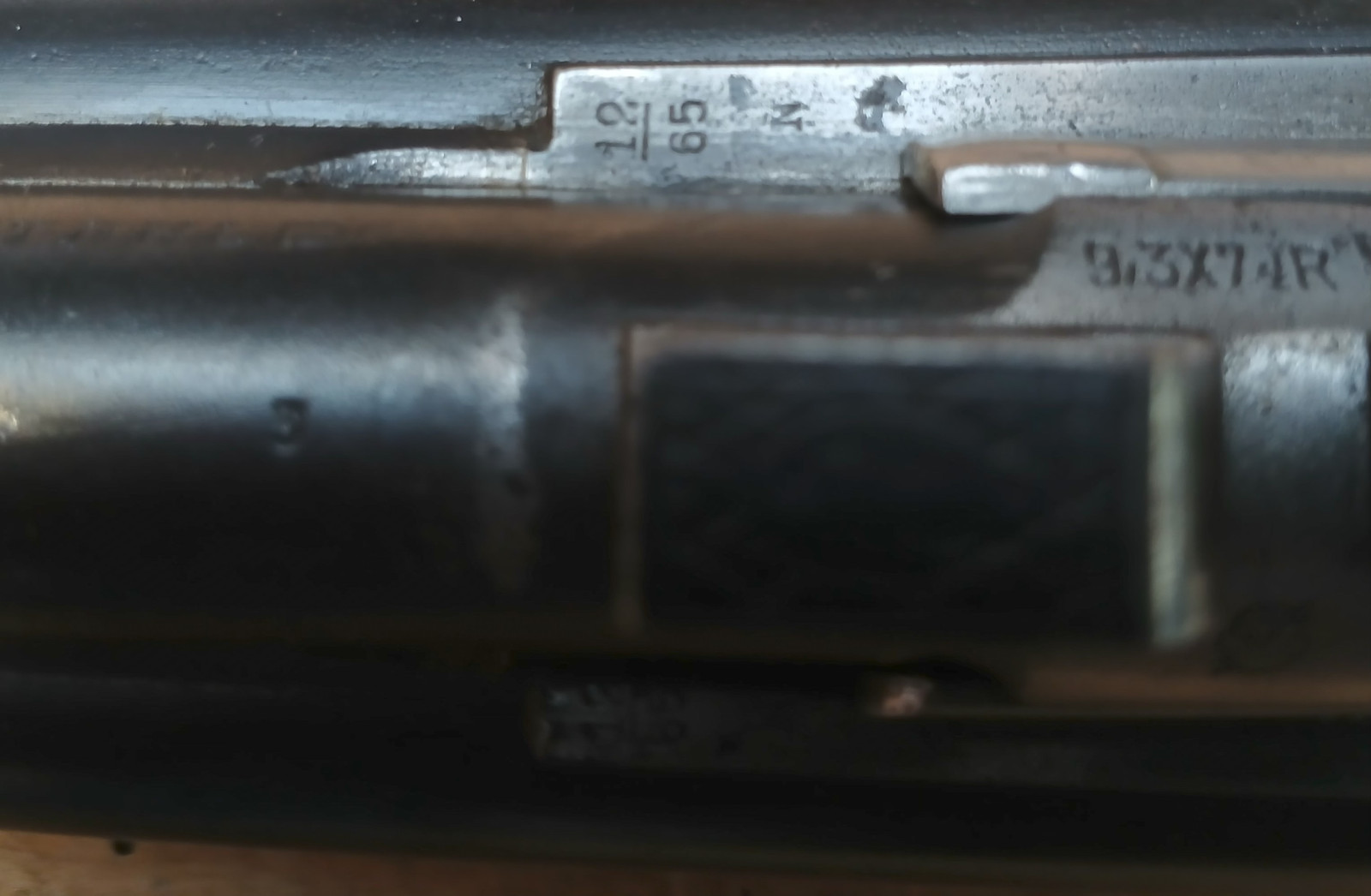 Kaliber: 9,3x74R + 12/65;  Verschluss ist dicht; Schrot-Läufe sind blank; Kugellauf; Züge+Felder sehr deutlich zu sehen; von leicht matt bis leicht angerauht