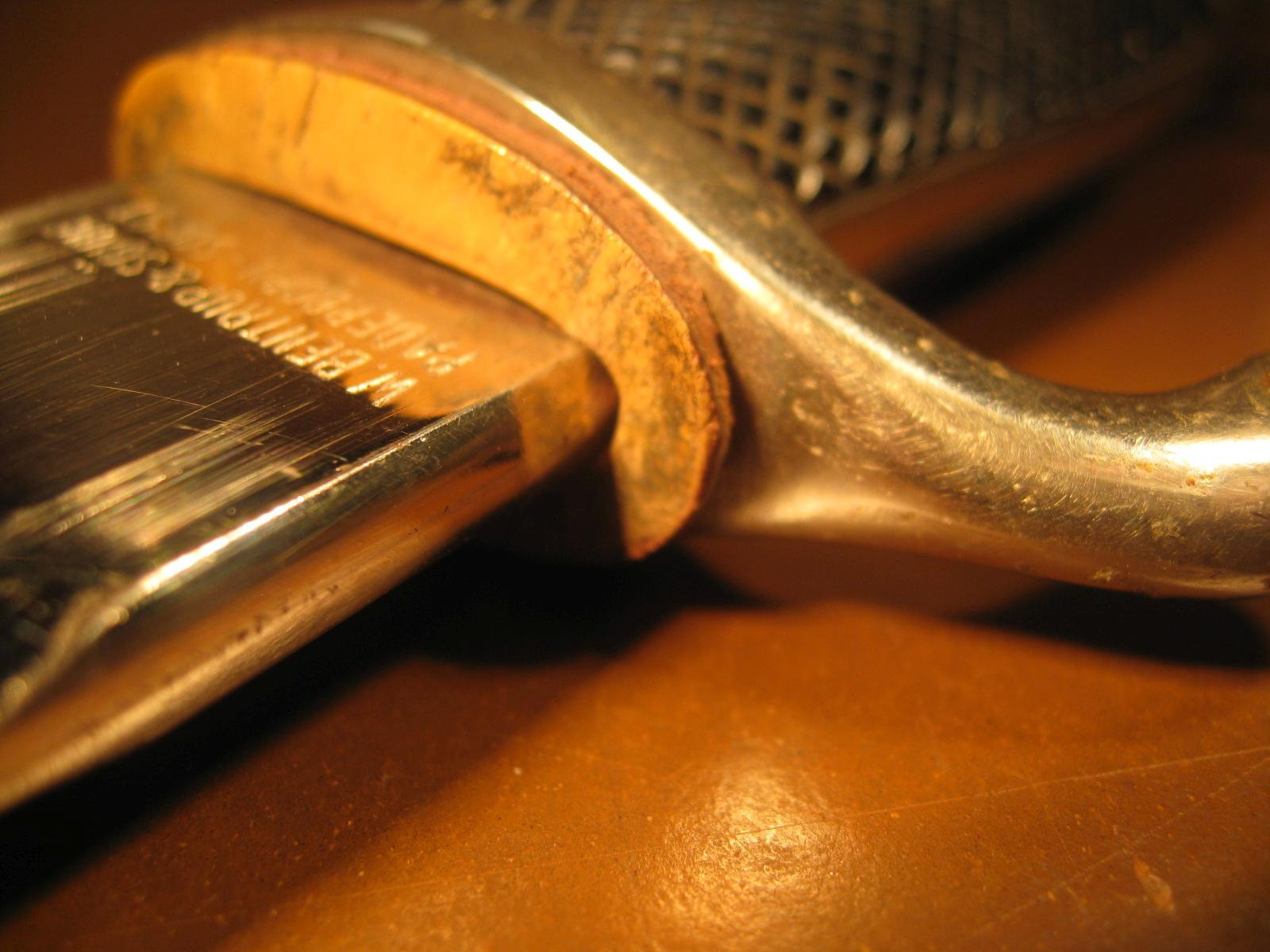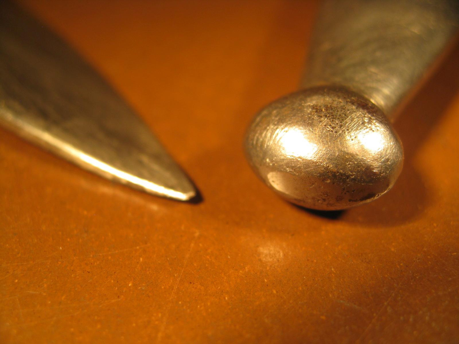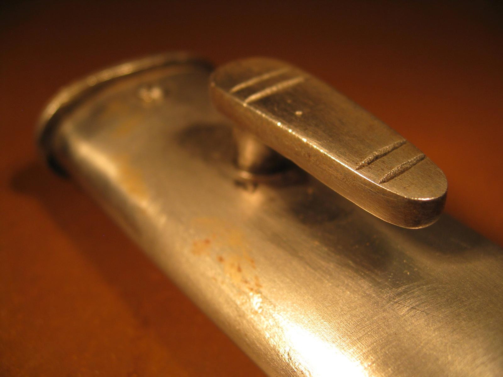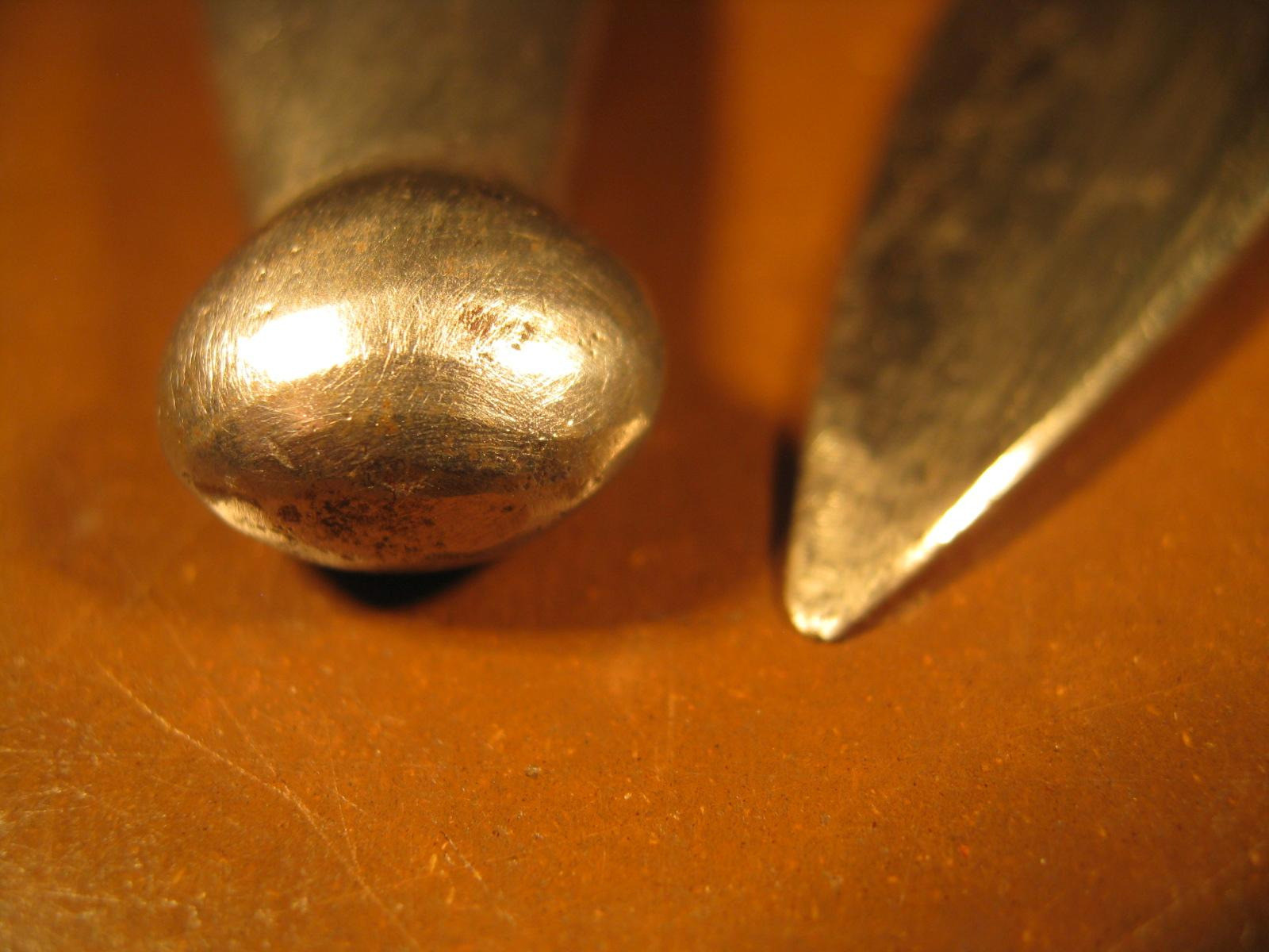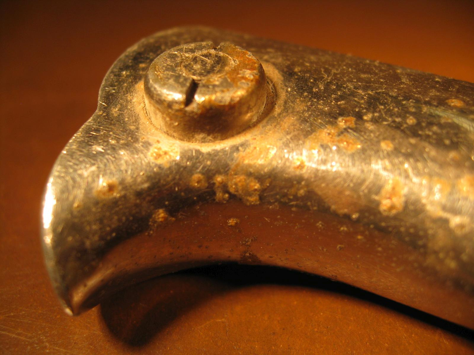 Die Scheide ist blank. Ich hatte bisher mehrere solche Scheiden. Ob sie so getragen wurden oder vom Besitzer/Träger so poliert wurden kann ich nicht sagen.