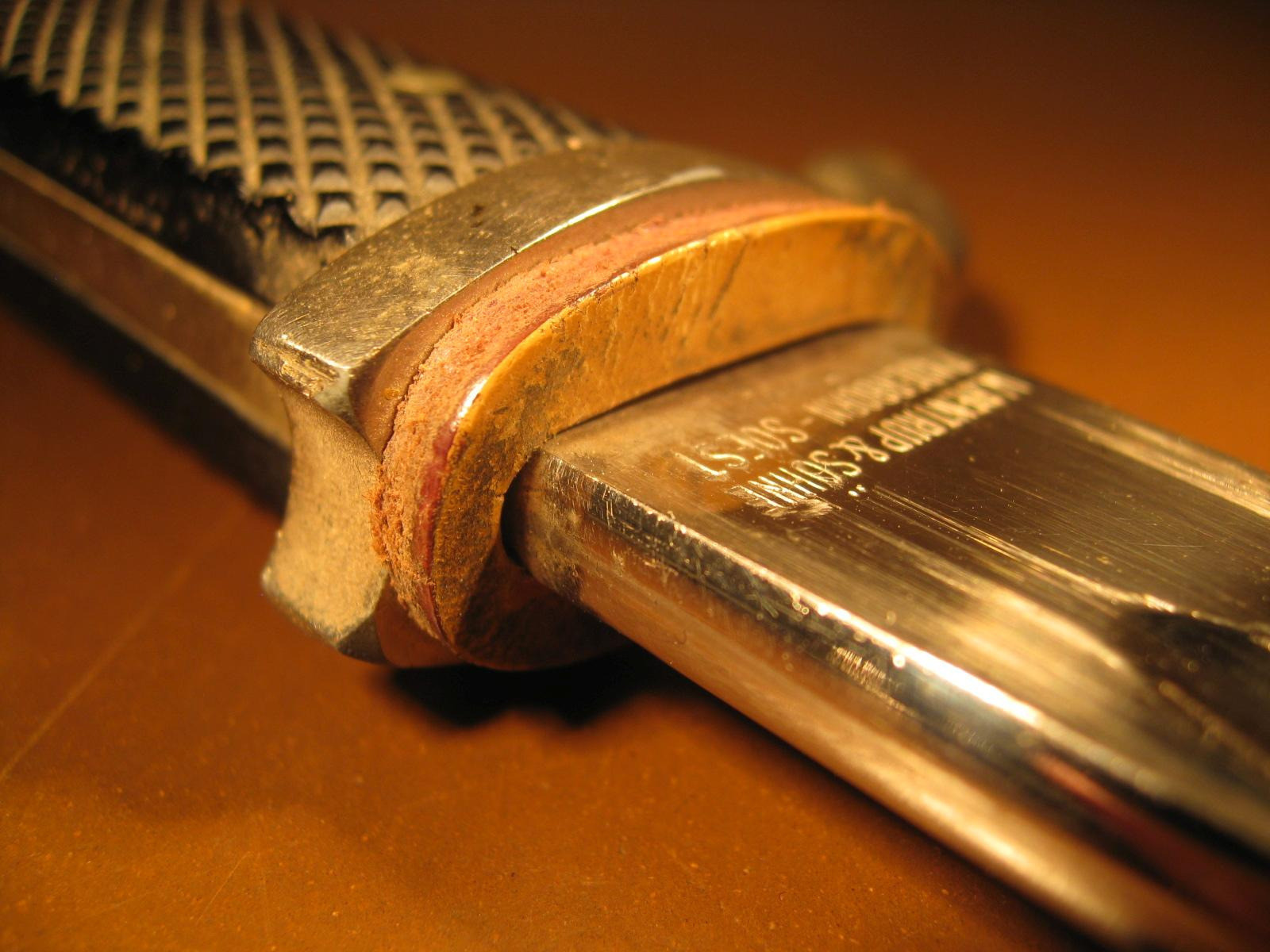 Klinge am unteren Ende durch Scheidenfeder etwas verkratzt.