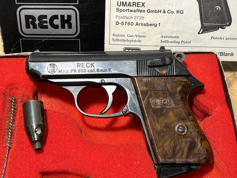 Hallo, ich biete meine wirklich schöne RECK PK800 in einem guten Zustand an. Es ist die bessere Version ohne Schwächung am Patronenlager. Die PTB 196 und Beschussjahr 1982 sagen schon alles. Lieferumfang: Pistole, OVP, Anleitung, Becher und Bürste. Egal ob was für den Sammler, oder zum Gebrauch, die Gute mach auf jeden Fall immer eine gute Figur.