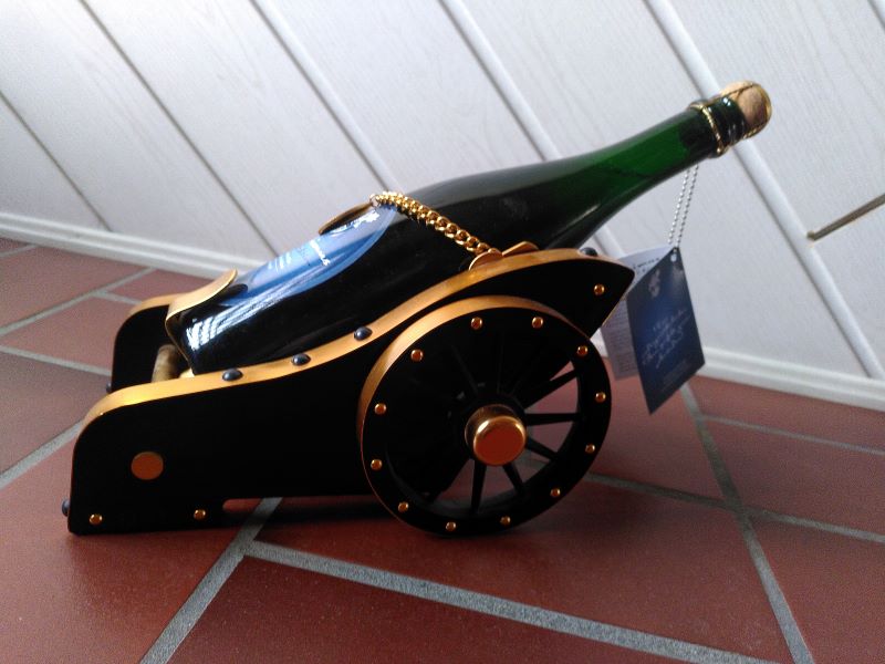 Verkauft wird nur die Lafette. Die Flasche dient zur Veranschaulichung.