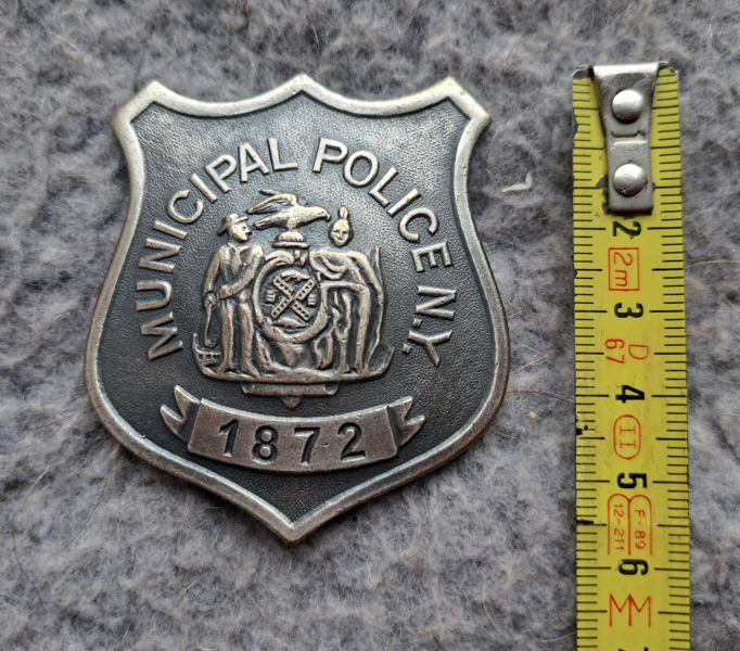 Verkaufe einmassives Polizeiabzeichen der New Yorker Municipal Police mit der Nummer 1872 im ungebrauchtem Zustand. Ca. 60 Gramm schwer 2mm dick - kein billiges Blechteil, jedoch eine schöne Nachprägung. Das Abzeichen macht schon was her....