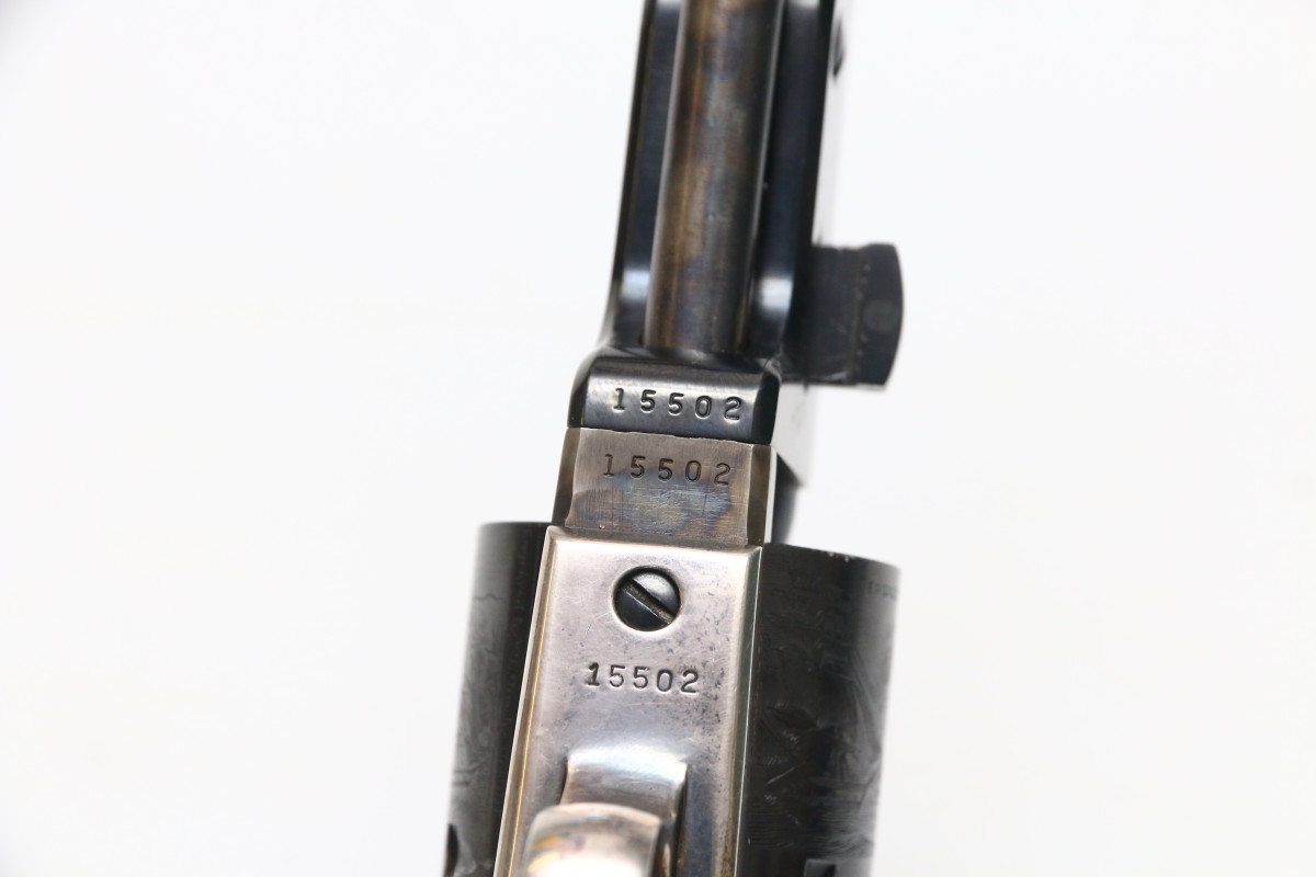 6-Schuss Trommel, Holzgriffschalen. gültiger Beschuss Lauf und Trommelbohrungen sehr gut, Brünierung 98%
