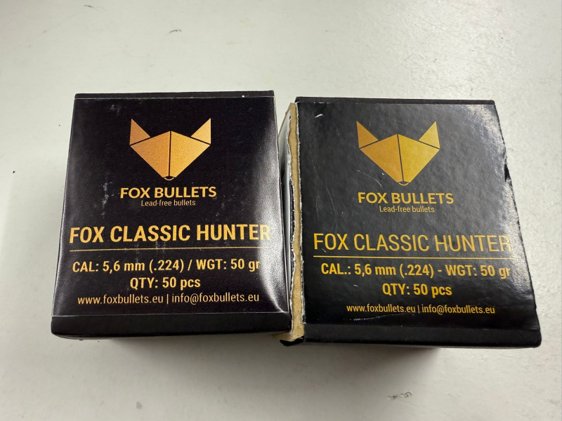 Verkaufe Fox Classic Hunter Geschosse im Kaliber .224 / 5,6 mm, Gewicht 50 gr, bleifrei.