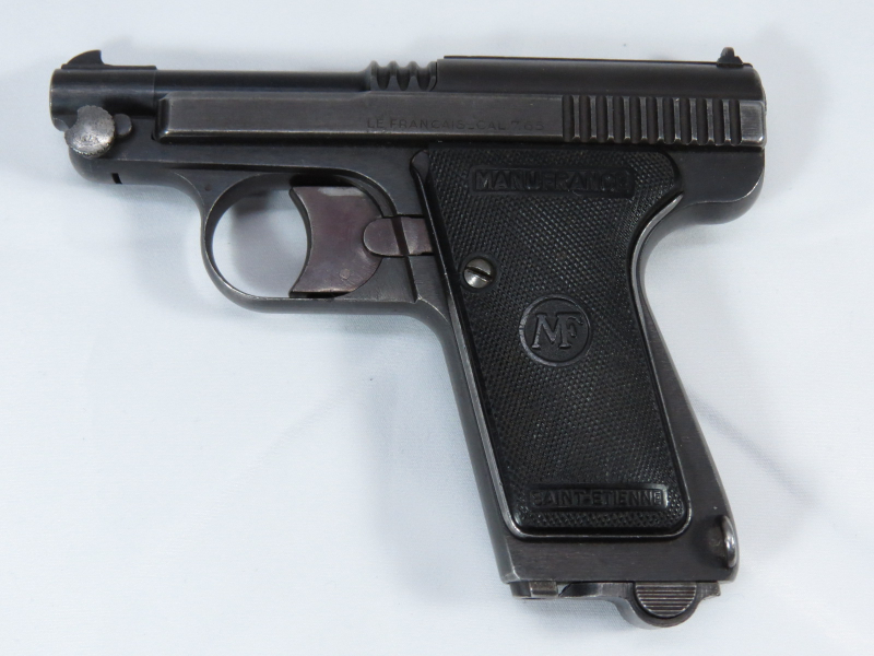 Pistole Manufrance Le Francais. Kal. 7,65. Lauf gut blank. Gebrauchter Zustand mit Gebrauchsspuren siehe Bilder. Verkauf nur an EWB.