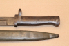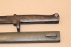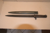 Ersatzbajonett,Klinge durchgehend leicht porig,Drücker ok,Eisengriff mit Patina und stellenweise porig.Scheide hatt koppelhaken seitig im unteren Bereich eine leichte Delle und drückerseitig drei Dellen.