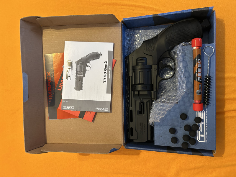Verkaufe hier den TR 50 von Umarex mit 10 Rubber Balls und 10 Pepperballs. Habe zweimal zwecks Tests damit geschossen. Der Revolver befindet sich also in einem neuwertigen Zustand.