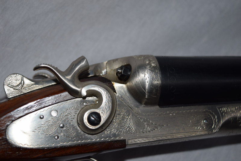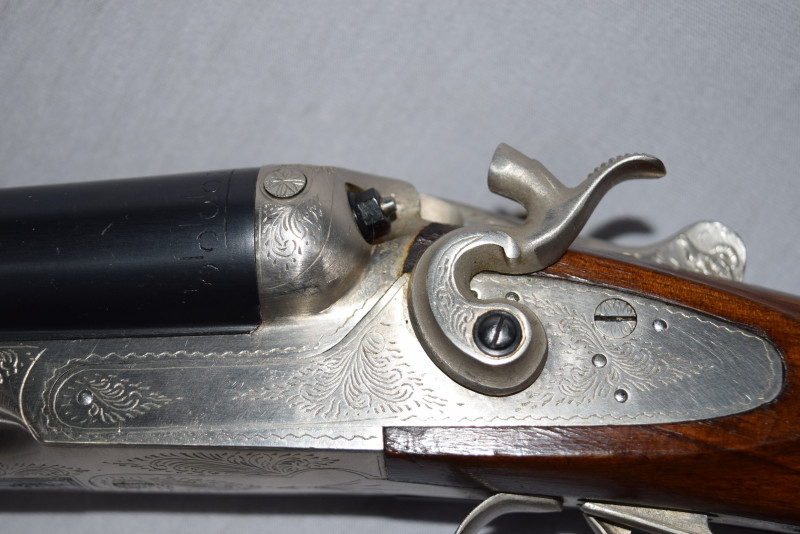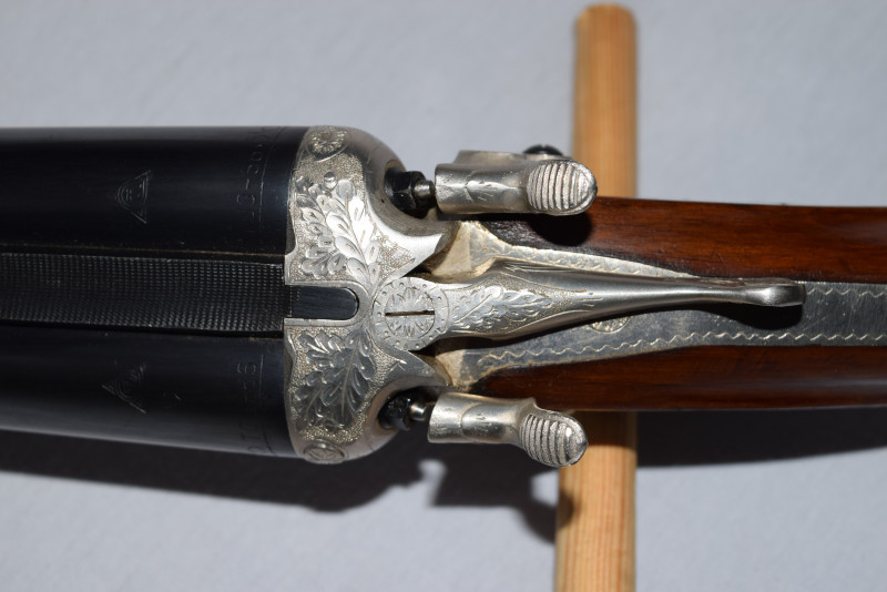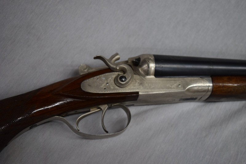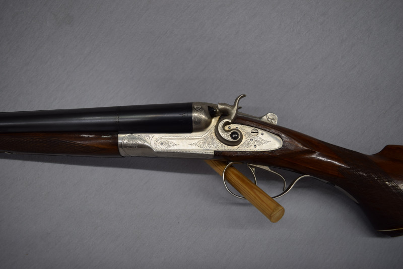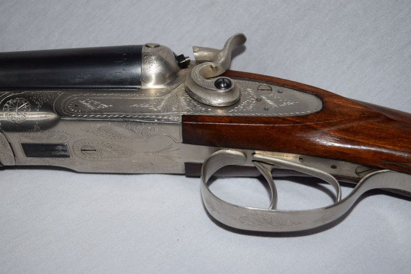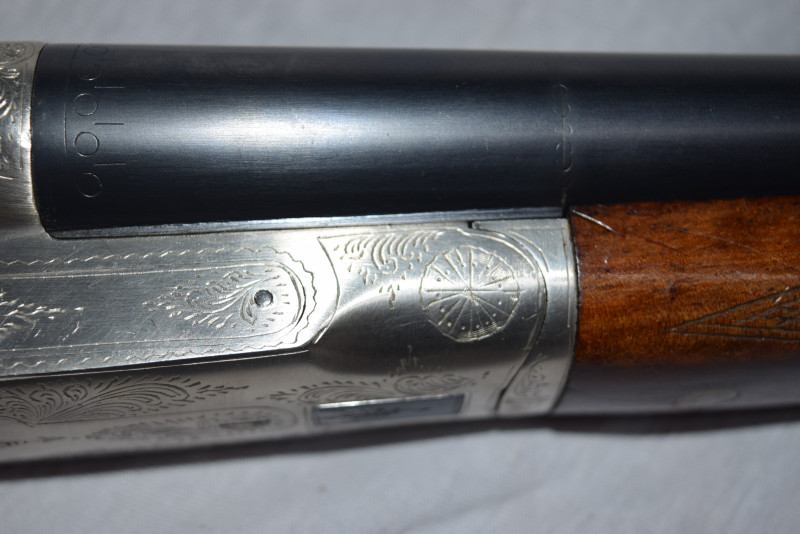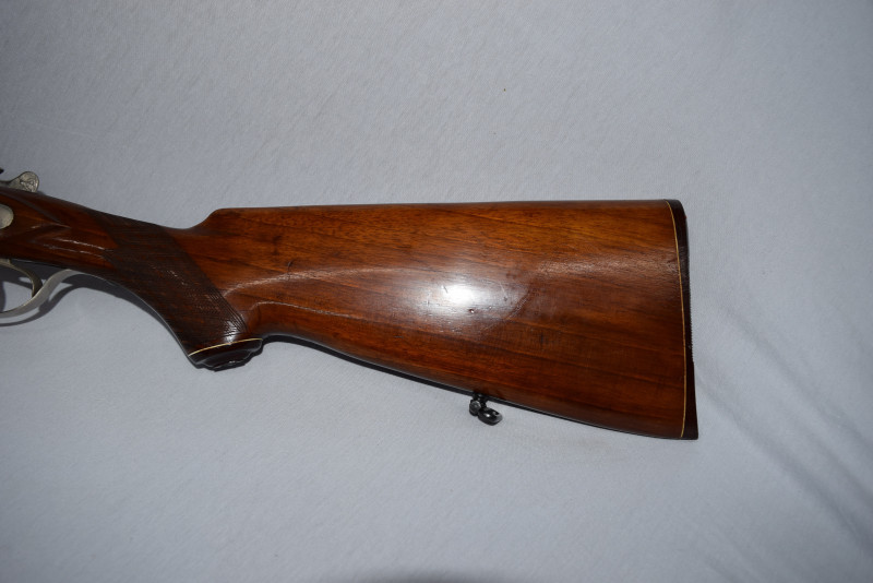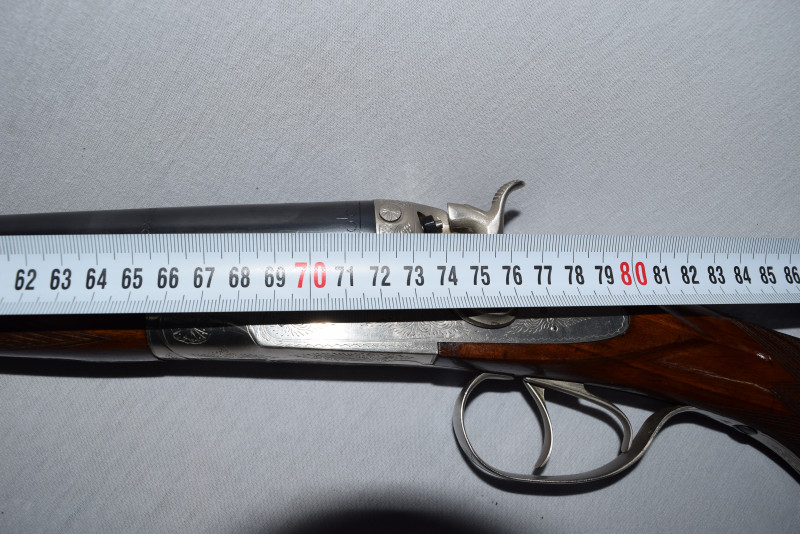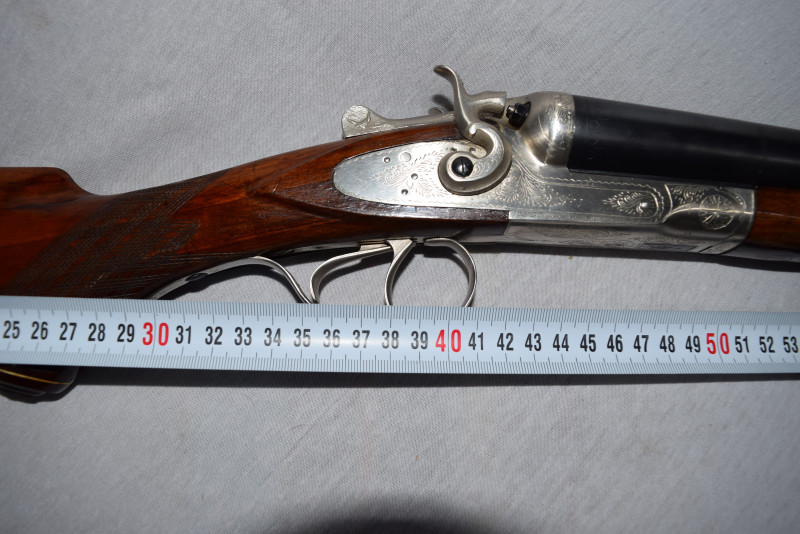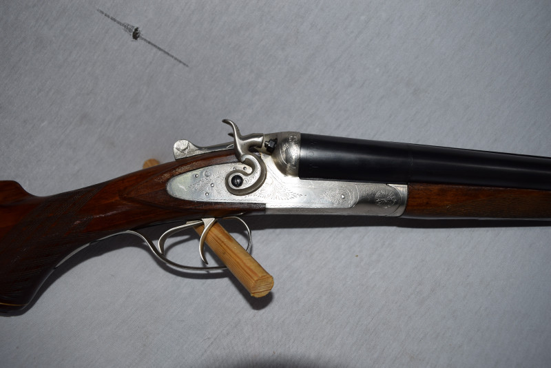 Zum Verkauf steht eine originale feine Side by Side, elegante und führige Hahn-Flinte.