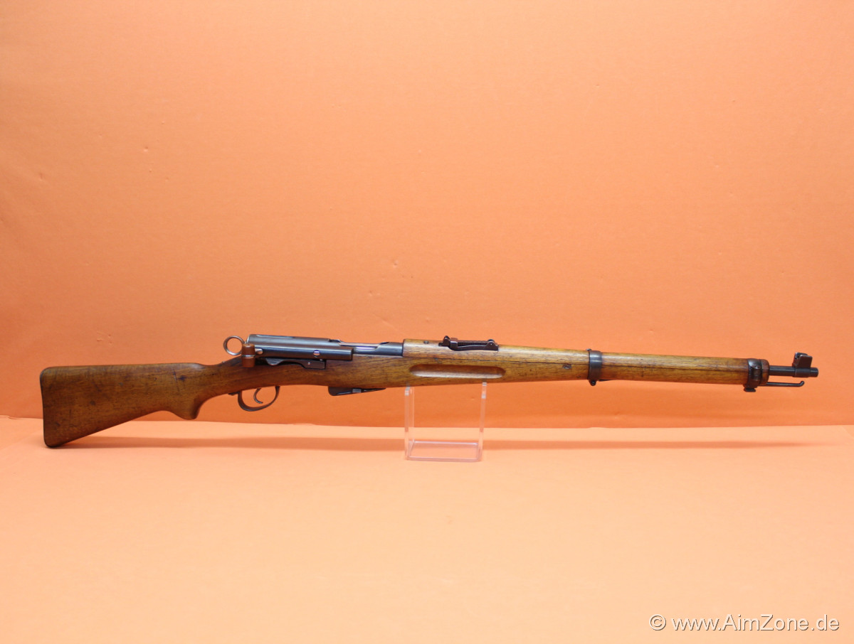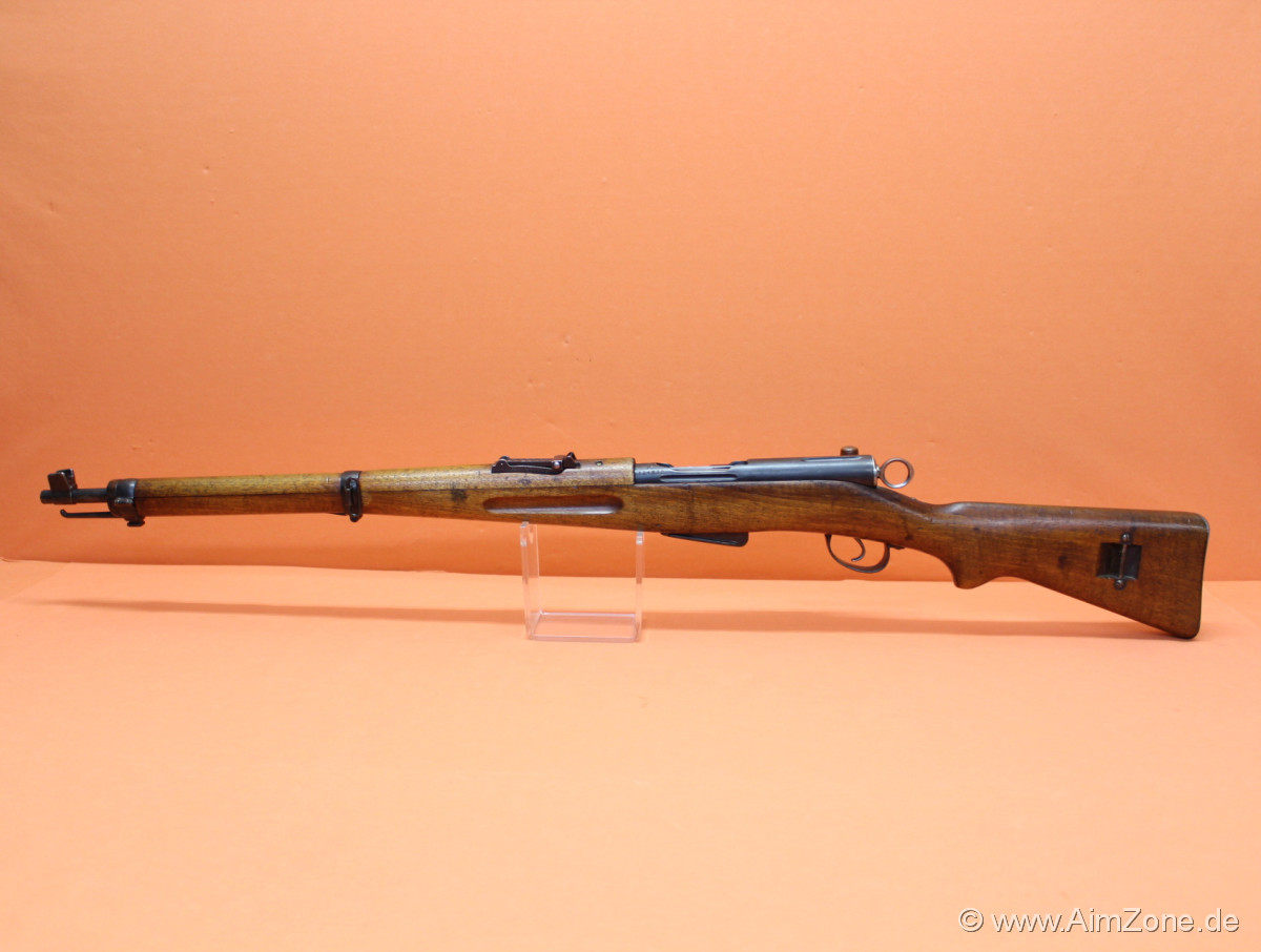 System Schmidt-Rubin K1911, 59cm Lauf mit Balkenkorn/ Schiebevisier bis 1500m, runde Systemhülse, Geradezug-Verschluss mit Handspannung/ -Entspannung, Holz-Handschutz und -Schaft mit Riemenbügeln (seitlich), 6-Schuss Einsteckmagazin. Gebraucht-/ Sammlerwaffe (ohne Zusicherung von mangelfreier Funktion/ Präzision). *Differenzbesteuerter Artikel nach §25a UStG*