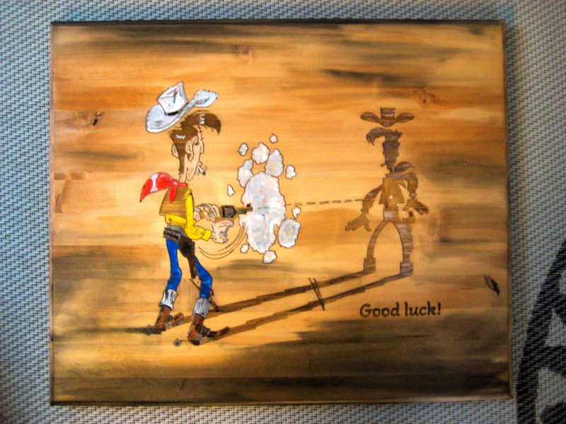 Die Scheibe ist nach dem bemalen mit Klarlack überzogen.