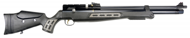 Ein erlaubnisfreies Luftgewehr im Kaliber 9 mm. Es ist hochwertig verarbeitet und überzeugt durch seine leichte Handhabung. Dieses Luftgewehr verfügt über einen schönen Polymerschaft mit gummierter Schaftkappe und höhenverstellbarer Schaftbacke. Es besitzt eine Fiberglasvisierung, einen gezogenen 9 mm Lauf und eine Weaver- und 11mm Prismenschiene auf der verschiedene Zieloptiken montiert werden können. An der Unterseite des Schaftes ist eine Weaverschiene angebracht, an der z.B. ein Zweibein montiert werden kann. Der Abzug ist titannitriert. Es ist ein Mehrlader mit 7 Schuß Magazinkapazität. An der Laufmündung ist ein M14x1 Außengewinde angebracht um Schalldämpfer oder Mündungsbremsen zu montieren. Angetrieben wird die Waffe über die in der Pressluftkartusche gespeicherte Luft. Fülldruck maximal 200 Bar. An der Vorderseite der Kartusche befindet sich ein Quick-fill Anschluss. Weitere Informationen über diese Waffe erhalten Sie auch auf der Internetseite des Herstellers Hatsan.