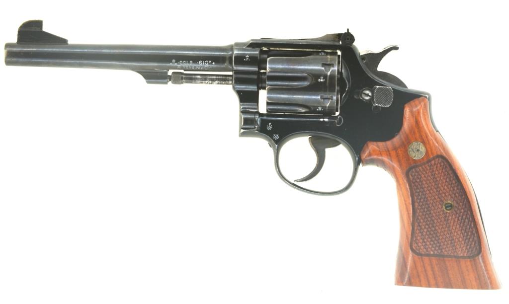 Seriennummer links innen auf dem Rahmen, Firmenlogo rechts auf dem Rahmen, Kaliberangabe ".22LR .610``" links auf dem Lauf, viele alte, gültige englische Beschusszeichen ("BNP", Birmingham Proof). Hinweis "MADE IN U.S.A." rechts auf dem Griffstück, wie auch das klassische S&W-"Trademark"-Rundlogo.