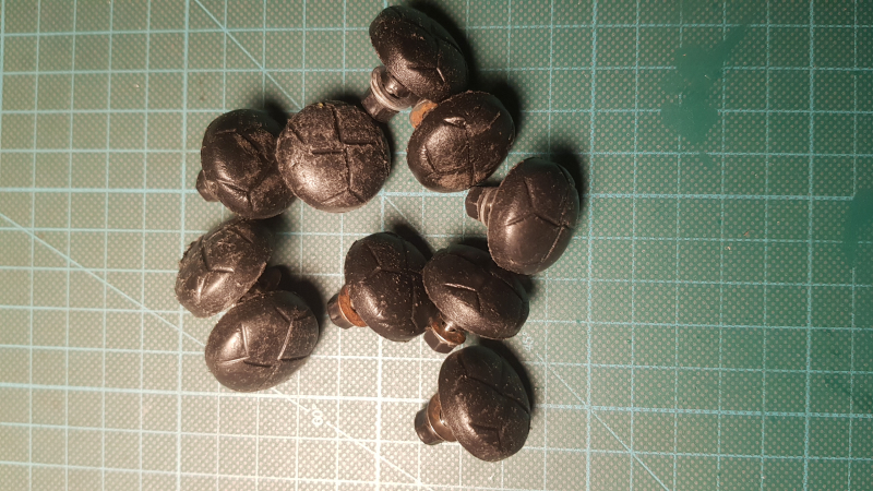 ich biete 10 schwarze Kunststoff-Schraubknöpfe für Schießjacken an.