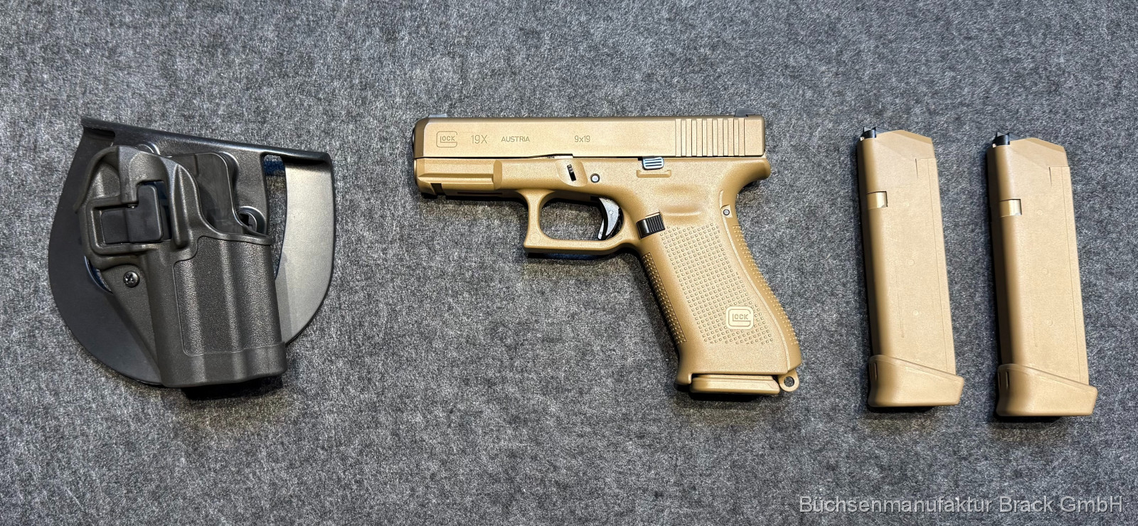 Glock 19X Coyote Kal. 9mmLuger inkl. Ersatzmagazine und Black Hawk Holster