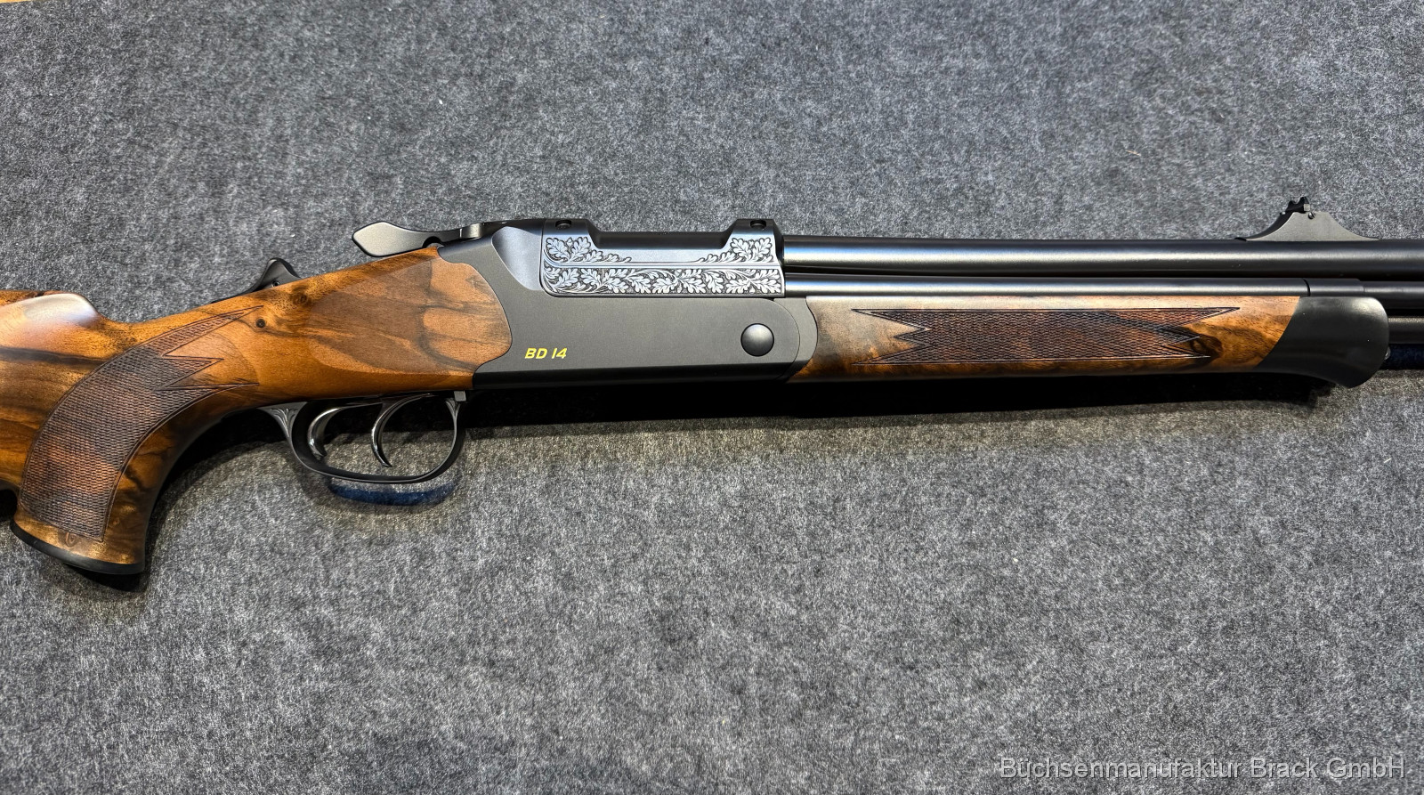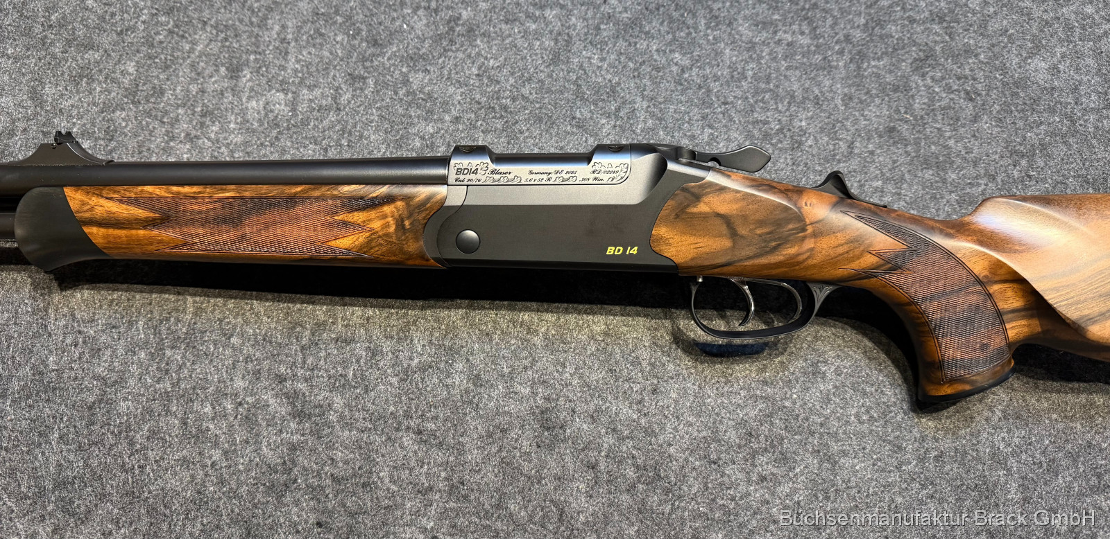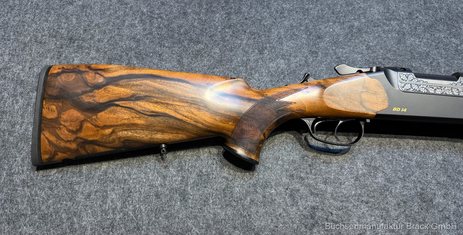 Dieser BD14 vereint modernste Blaser-Technik mit klassischer, hochwertiger Gravurarbeit und außergewöhnlichem Schaftholz. Ein Bockdrilling für den anspruchsvollen Jäger oder Sammler, der ein seltenes, sofort verfügbares Spitzenstück sucht – ohne Wartezeit und ohne Kompromisse.