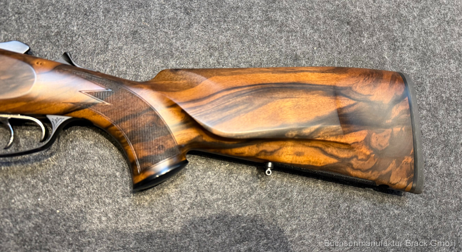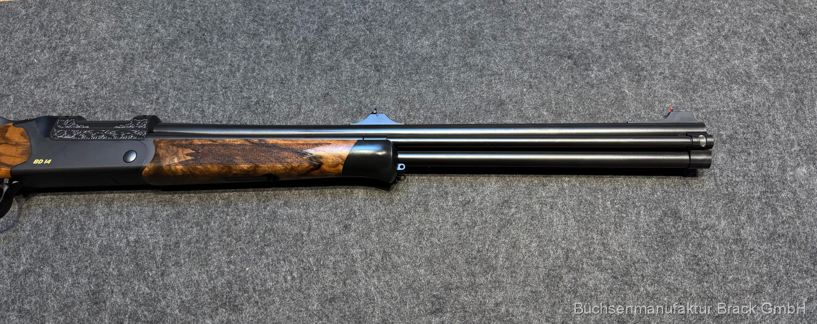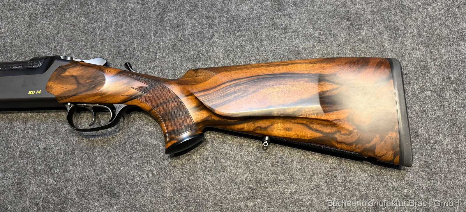 Dieser BD14 vereint modernste Blaser-Technik mit klassischer, hochwertiger Gravurarbeit und außergewöhnlichem Schaftholz. Ein Bockdrilling für den anspruchsvollen Jäger oder Sammler, der ein seltenes, sofort verfügbares Spitzenstück sucht – ohne Wartezeit und ohne Kompromisse.