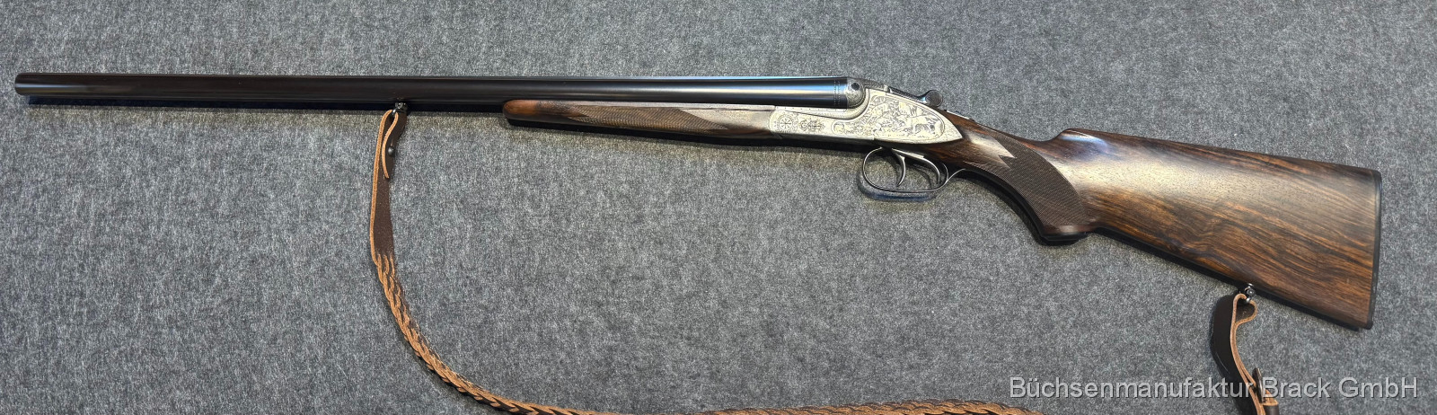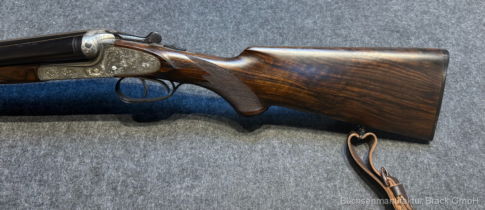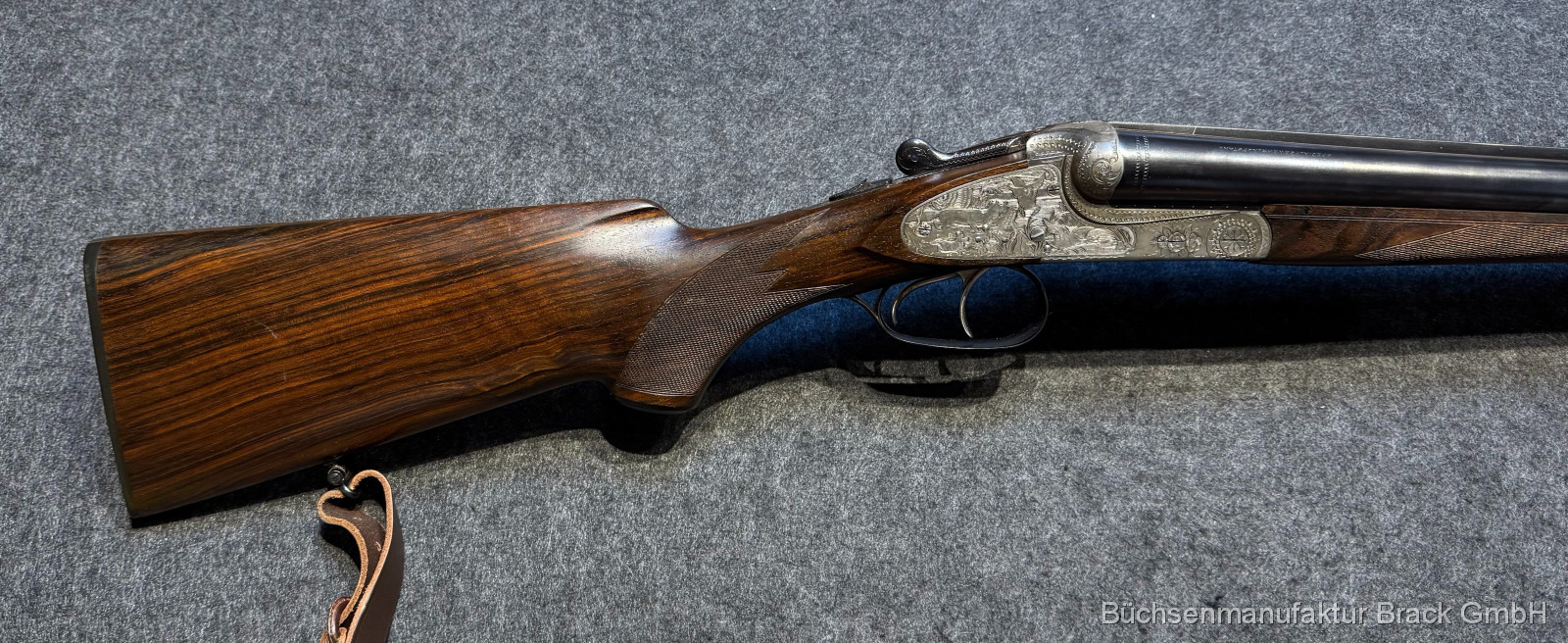 Diese Merkel 60E ist eine klassische deutsche Doppelflinte in bemerkenswertem Zustand. Strammer Verschluss, feines Schaftholz, saubere Technik – ergänzt durch einen stilechten Ledergewehrriemen ein rundes Gesamtpaket für den anspruchsvollen Jäger oder Liebhaber, der Substanz, Eleganz und Werthaltigkeit sucht.