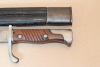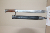 98/05 A.A.W15 Hersteller:Simson Suhl.Klinge mit leichten Anschliff ohne Kerben.Griffschalen und Drücker ok.Lederscheide getragener Zustand die Naht ist durchgehend leicht auf.Mundblech koppelhaken seitig porig,Rückseite feinporig.Ortblech feinporig mit 35mm langen riss an der Schmalseite.