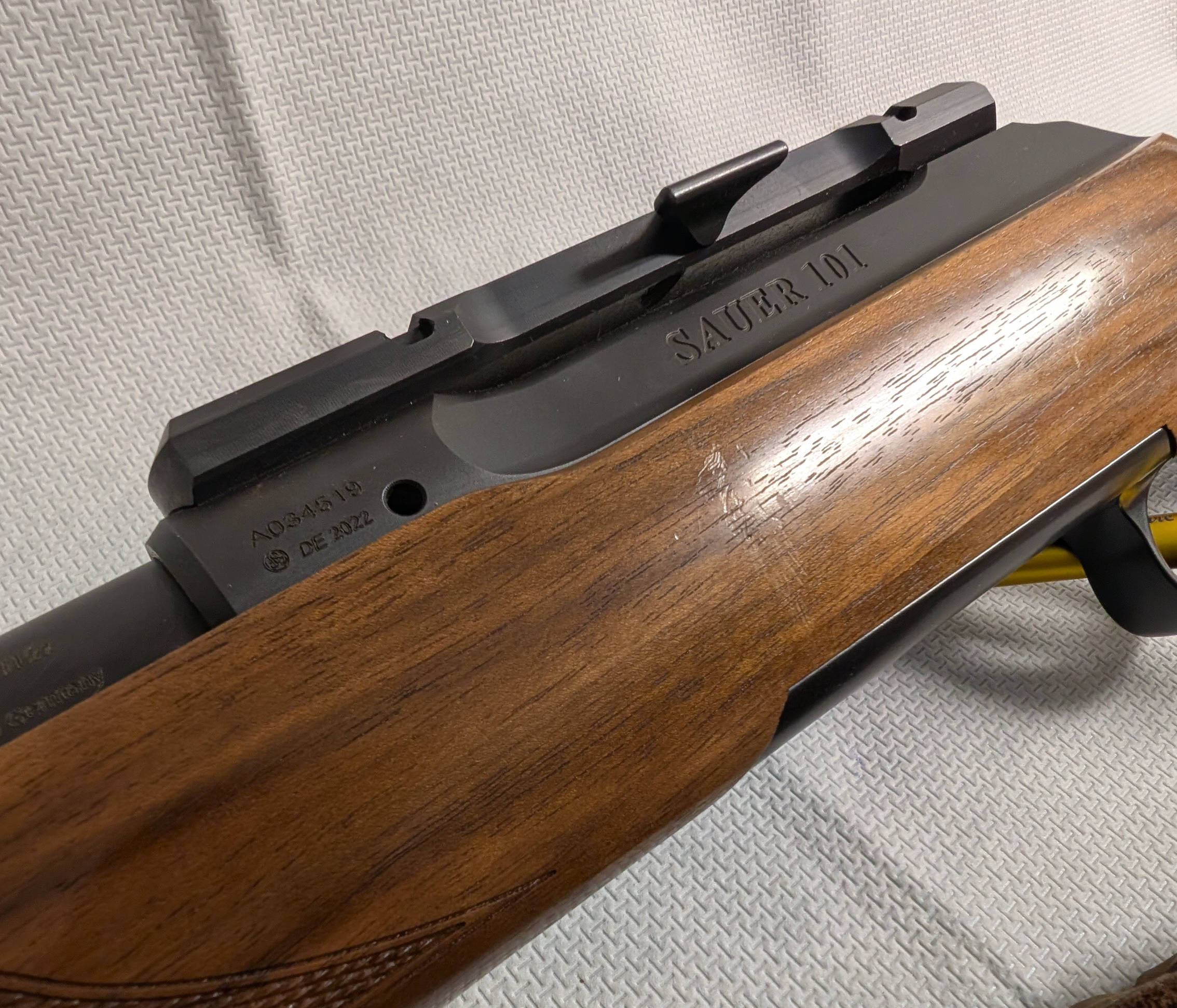 Die elegante, klassische Sauer 101 Repetierbüchse. Die S 101 Elegance besticht durch den Schaft in edlem Walnussholz der Schaftholzklasse 4. Die rote Schaftkappe verleiht der Waffe das gewisse etwas.