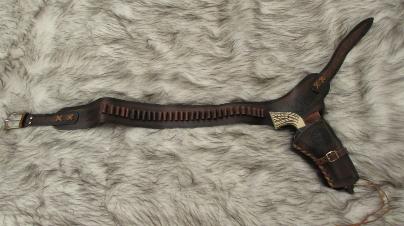 COWBOY HOLSTER BRAUN RECHTS HAND FÜR ALLE GÄNGIGEN WESTERNREVOLVER. GANZ EINFACH VERLÄNGER ODER KÜRZBAR. ALSO FÜR JEDEN WAS. 30 PATRONENSCHALAUFEN KAL. 38 DIE SICH ABER MIT ETWAS KALTEM WASSER GANZ LEICHT AUF KAL.45 WEITEN LASSEN. GESAMTLÄNGE CA. 1,13M, ERSTES LOCH BEI 0,94M LETZTES LOCH BEI 1,07M. ALLES WEITERE ENTNEHMEN SIE BITTE DEN FOTOS. SIE BEKOMMEN GENAU WAS SIE SEHEN.