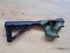 Und damit ihr auch auf 25m Freude habt ist als Goodie ein individuell gefertigter Anschlagschaft dabei. Schichtholz mit Milspec-BufferTube und -Hinterschaft. Passt mit der original Steyr-Einlage und -Schraube (die ihr ja im Griff habt). Ggf. müsst ihr noch eine kleine zusätzliche Einlage verwenden. Oder eben die schraube hart anziehen. :-)