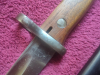 Bajonett mit Holzgriff und Stahlscheide. Verriegelung gängig. Beschriftung O 989 auf dem Bajonett. Kein Hersteller erkennbar. Beulen im unteren Bereich der Stahlscheide.