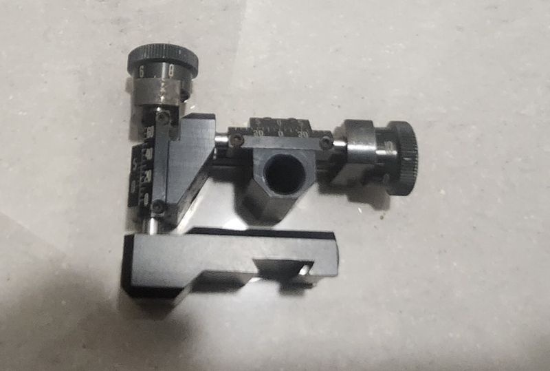 Es handelt sich um einen sehr gut erhaltenen Diopter Centra Base. Der Diopter ist spindelgelagert und verfügt über eine sehr feine Verstellung. Wenn eine kleine Iris verbaut wird, eignet er sich perfekt für die Beobachtung von Windfahnen - während des Zielens!