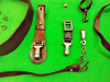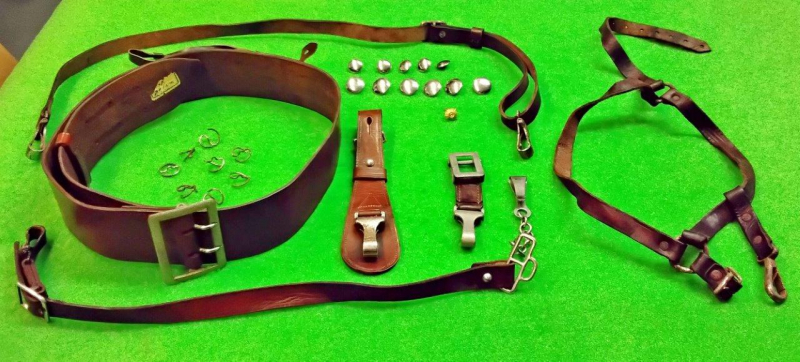Verkaufe privat eine 85 Jahre alte, originale, unangetastete Koppel-Garnitur einer Wehrmachts-Offiziers-Uniform. Das Koppelzeug ist aus der früheren Kriegszeit und deshalb hier (noch) braun. In den späteren Kriegsjahren wurde schwarzes Koppelzeug getragen, damit Offiziere aus der Entfernung nicht leicht als solche erkennbar sind. Zur Garnitur gehören u.a. 6 Rock-Knöpfe von ASSMANN & SÖHNE LÜDENSCHEID einschl. Knopflochspangen.