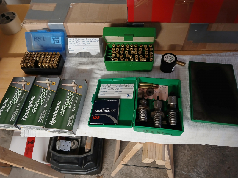 Hallo , verkaufe einen Satz 223 Matritzen mit Redding Neck Matritze, ca 150Hülsen, alle einmal abgeschossen, mit HH und fettkissen, trocken Schmierung mittel kleine rund Box , alles dabei was auf dem Bild zu sehen ist !