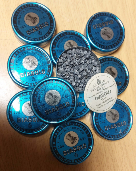 2000 Schuss Diabolo DDR Schönebeck verpackt in 10 Originaldosen.