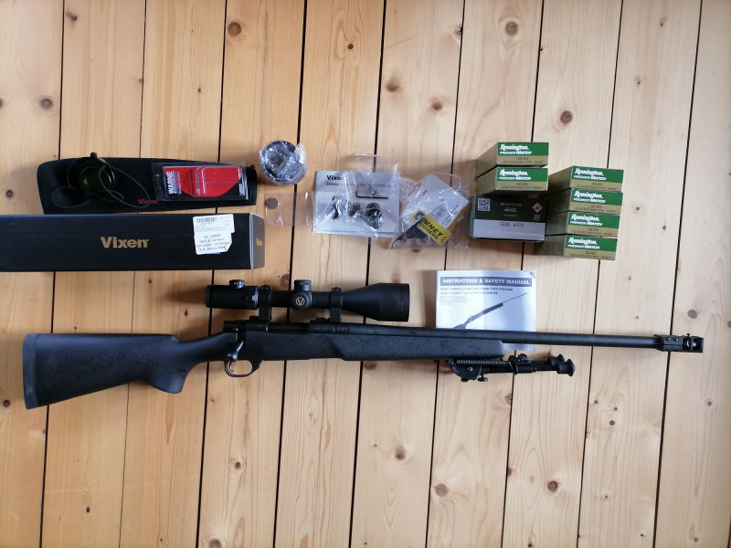 Zum Verkauf steht ein Howa 1500 in .308 mit Vixen Optik, Matchabzug und Munitionspaket (Anzahl nicht ermittelt, nicht alle Packungen sind komplett gefüllt). Bei Übergabe ist die Optik mit Picatinnymontage demontiert. Der Schaft hat lagerungsbedingt oberflächliche Spuren. Ich kann nicht garantieren, ob sich diese entfernen lassen oder es sich um leichte Kratzer handelt. Bitte entnehmen Sie den Zustand den Fotos. Alle Angaben sind nach bestem Wissen und Gewissen ohne Gewähr; als Privatverkäufer schließe ich jede Gewährleistung und Garantie aus. Bitte ausschließlich Abholung im Raum Bonn nach Verabredung. Abgabe nur an Berechtigte; Abgabe der Munition im Paket nur, wenn Berechtigung zum Erwerb der Munition vorliegt.