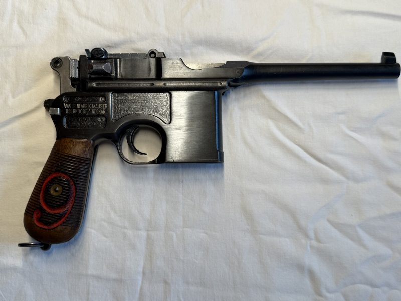 C96 cal. 9mm Luger in einem Top Zustand, blaue Anlassfarbe schön erhalten. Der Lauf, Züge und Felder spiegelblank. Die originalen Griffschalen Nummer abweichend, ansonsten alles nummerngleich. Militärische Abnahme vorhanden. Besichtigung vor Ablauf der Auktion erwünscht. Versand nur innerhalb Deutschland. Bieter aus dem Ausland müssen einen Händler benennen der den Ex- u. Import durchführt. Keine Garantie und Rücknahme!