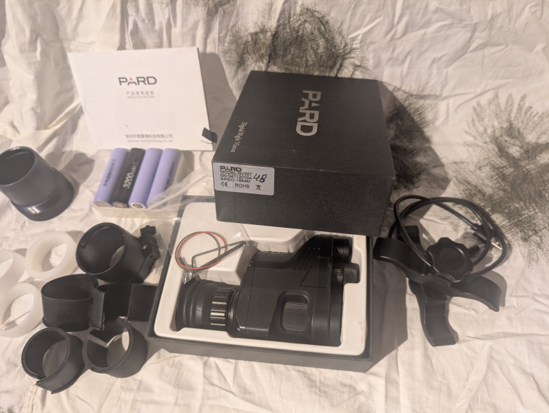 Verkaufe digitales Nachtsichtvorsatzgerät mit Adapter für ca 45 mm Okular. Distanzringe siehe Bilder,die orginale Schnellmontage liegt bei, sowie der unten genauer Beschriebene Universalabapter, Ersatzdichtungen und zwei Akkus sind mit dabei (siehe Bild). Das Gerät hat leichte Gebrauchsspuren (siehe Bild, Kratzer an der Kante) aber funktioniert einwandfrei.