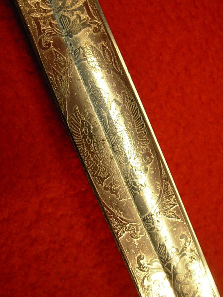 Originaler k.u.k. Offizierssäbel mit Ätzung – Kaiser Franz Josef Reichsadler – Scheide originalvernickelt - Seltenes Stück