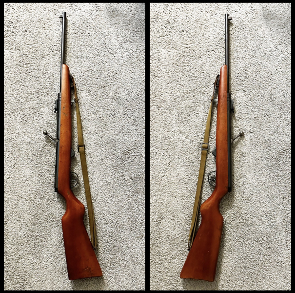 Luftgewehr Haenel 310 mit 8er Stangenmagazin und Gurt, Hebel schlackert etwas, Schaft mit Gebrauchsspuren dem Alter entsprechend. Etwas Flugrostig. Ein wenig Liebe braucht es sicher. Druck dem Alter entsprechend gut.