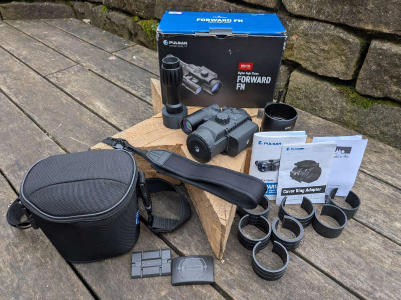 Die Lieferung erfolgt in der Originalverpackung mit allem abgebildeten Zubehör (Ladegeräte, Akku, IR-Strahler, Tasche,...). Das Paket enthält alles, um sofort bei dunkelster Nacht jagen zu gehen. Mit dem beigelegten Adapter sowie den Einlagen kann das Gerät an fast jedes ZF angebracht werden. Der beiligende IR-Strahler ermöglicht sichere Schüsse auf über 150 Meter (Achtung: Rechtslage beachten!). Auch ohne IR-Strahler ist das Bild auch im dunklen Wald sehr gut - dank Pulsar SUMLIGHT-Funktion.