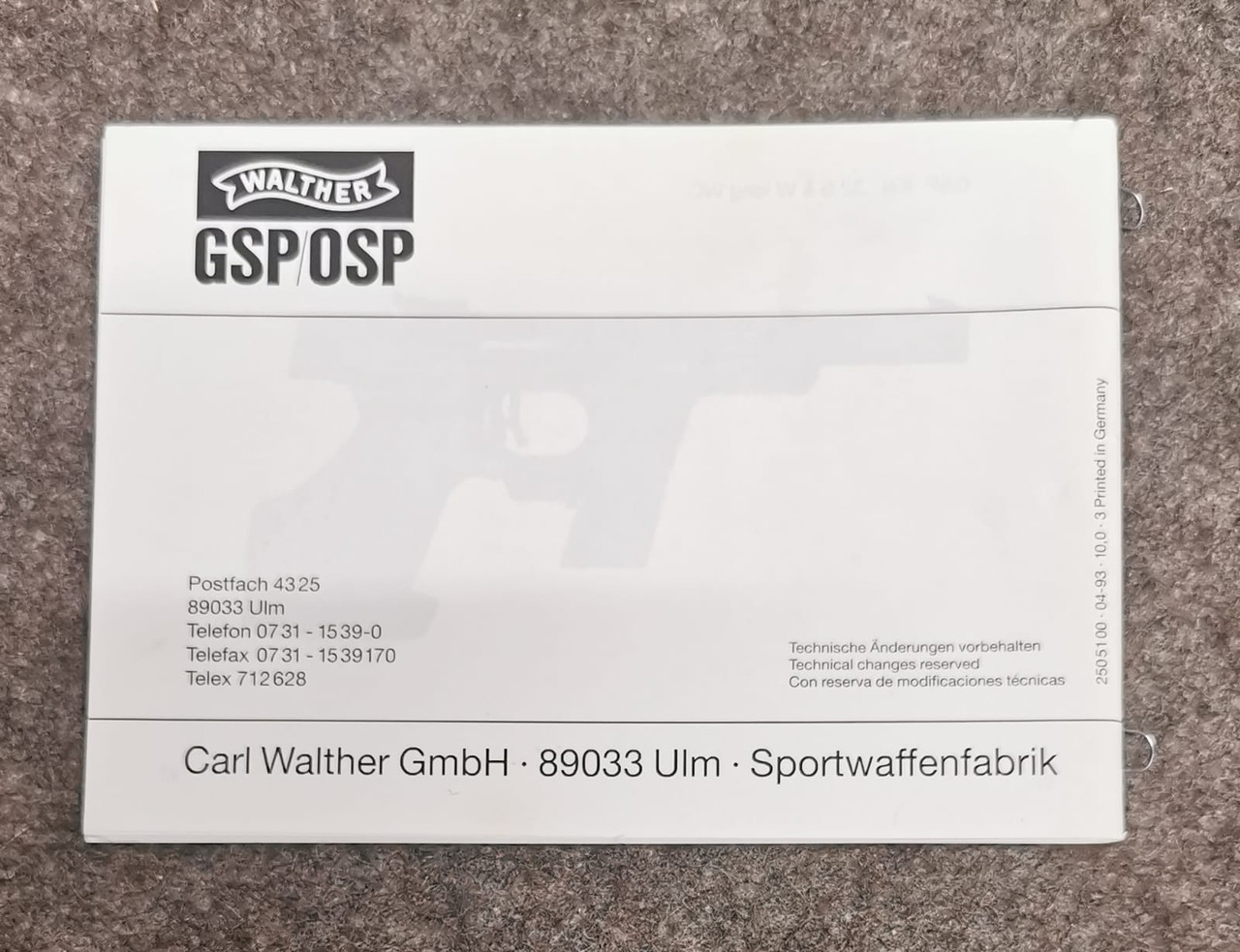Original Walther GSP Bedienungsanleitung.