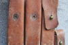 Biete hier diese 3 Magazintaschen für die MP38/MP40/MP41 aus braunem Leder an, norwegische Nachkriegsfertigung, eine Tasche innen mit Tintenstempel „MP38u.40“, guter gebrauchter Zustand. Bei einer der Taschen fehlen 2 Halteknöpfe, siehe letztes Foto dazu. Das Leder ist noch weich und auch die Nähte/Nieten sind fest und in Ordnung. Fragen hierzu gerne per email. Allen Bietern viel Erfolg